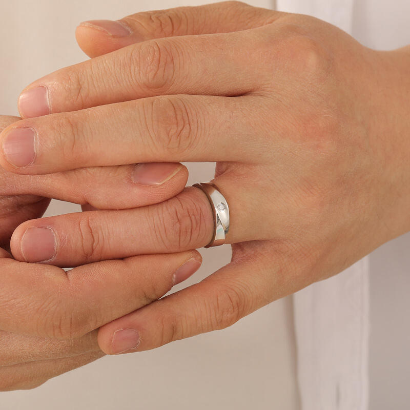 A classic knot men's wedding band for the quiet architects of forever: the knot here is not a decoration, but a structural creed. The silver strands twist and flatten as they encircle the finger, their matte and polished planes alternating like the duality of strength—firm enough to hold, supple enough to endure. No stones interrupt the metal’s narrative; the knotted grooves deepen with time, etching a topography of mornings made coffee and silent drives home.
