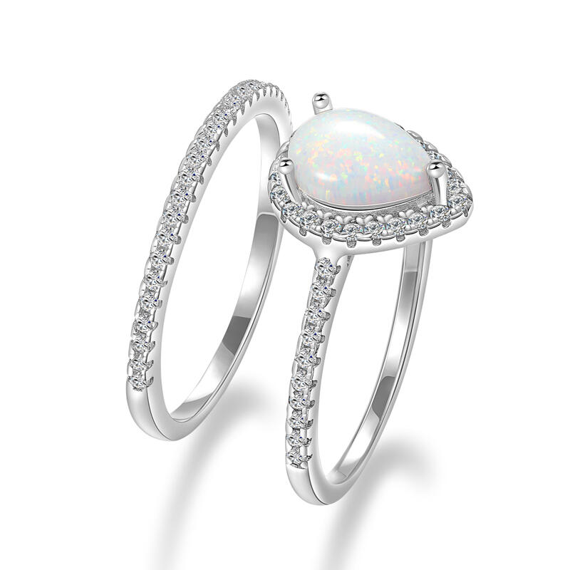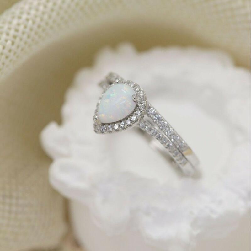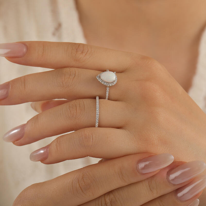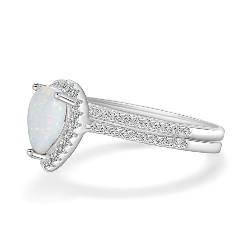 Jeulia Classic Pear Cut Opal Ring Set Sterling Silver