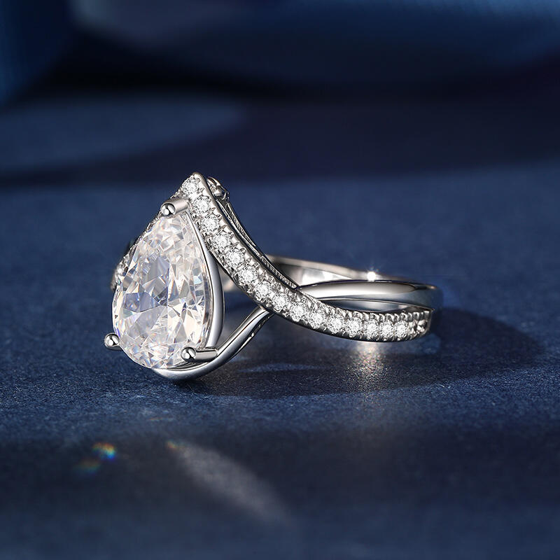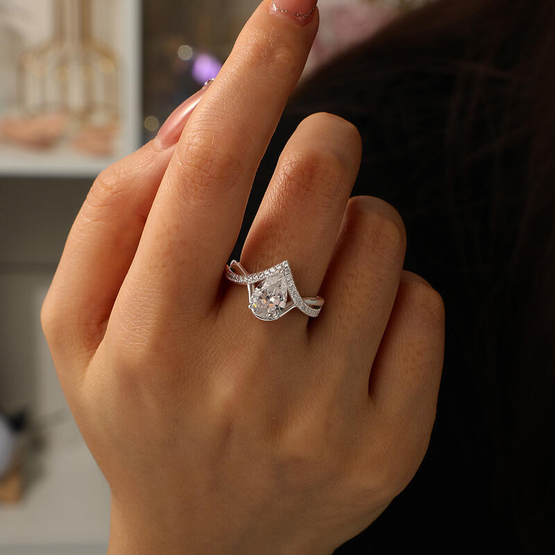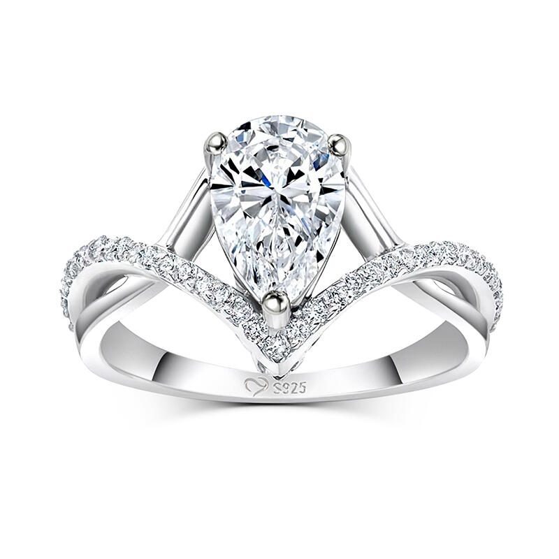 Jeulia Classic Twist Pear Cut Sterling Silver Ring