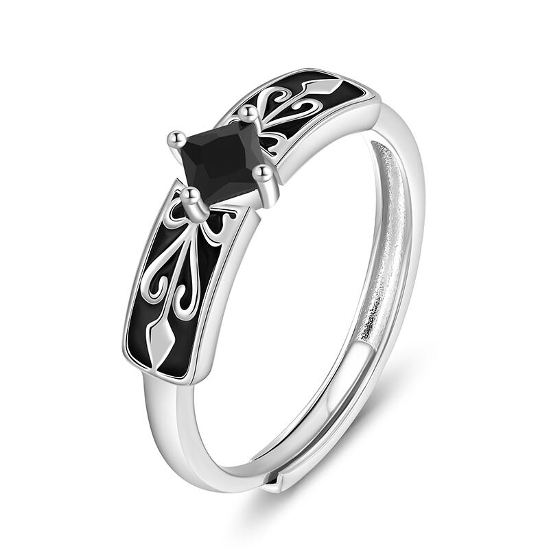 Jeulia Cool Black Knight Adjustable Men Ring Sterling Silver