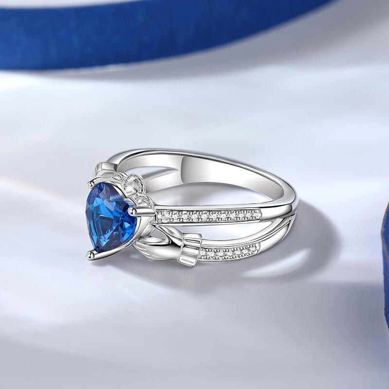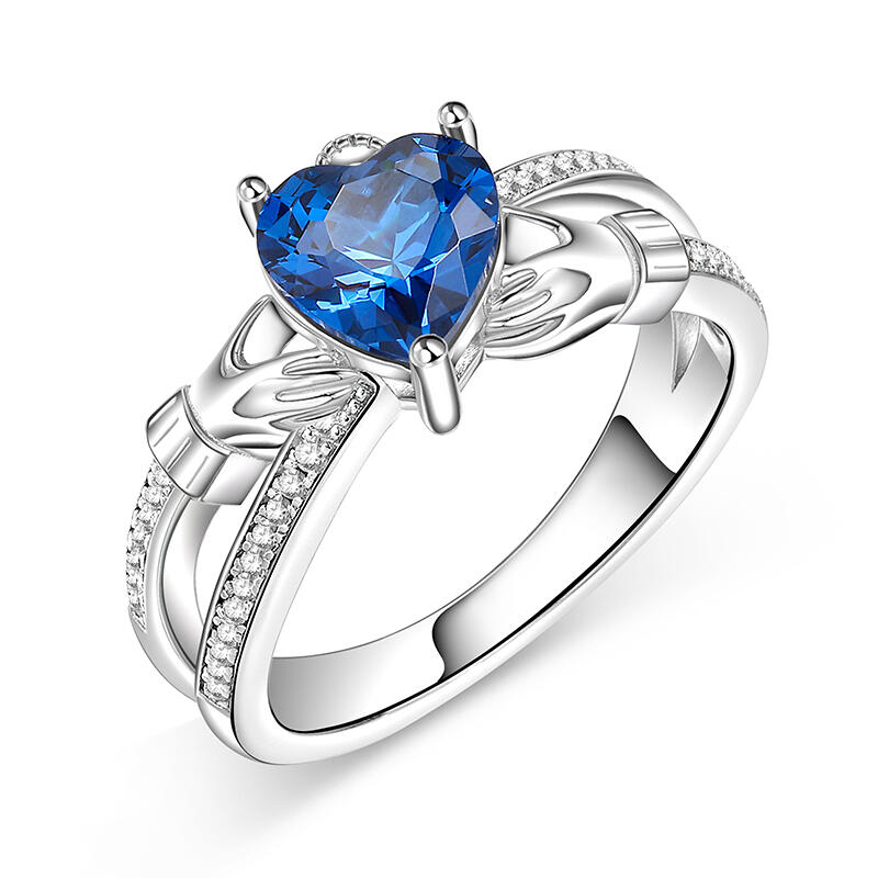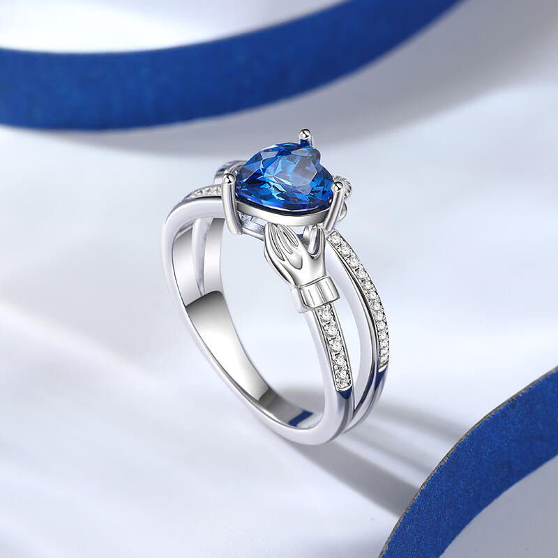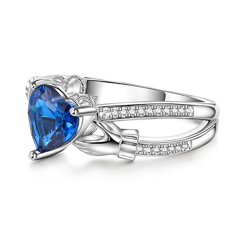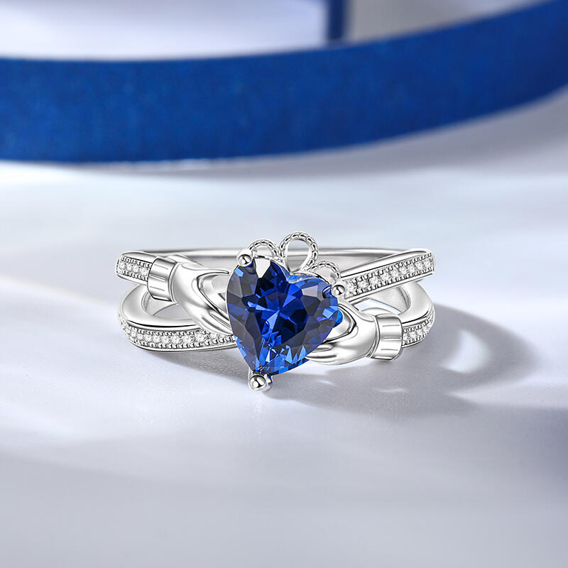 Jeulia Crossover Heart Cut Claddagh Sterling Silver Ring