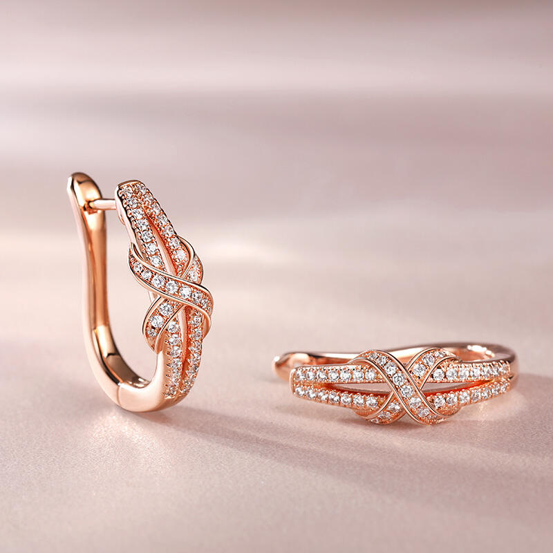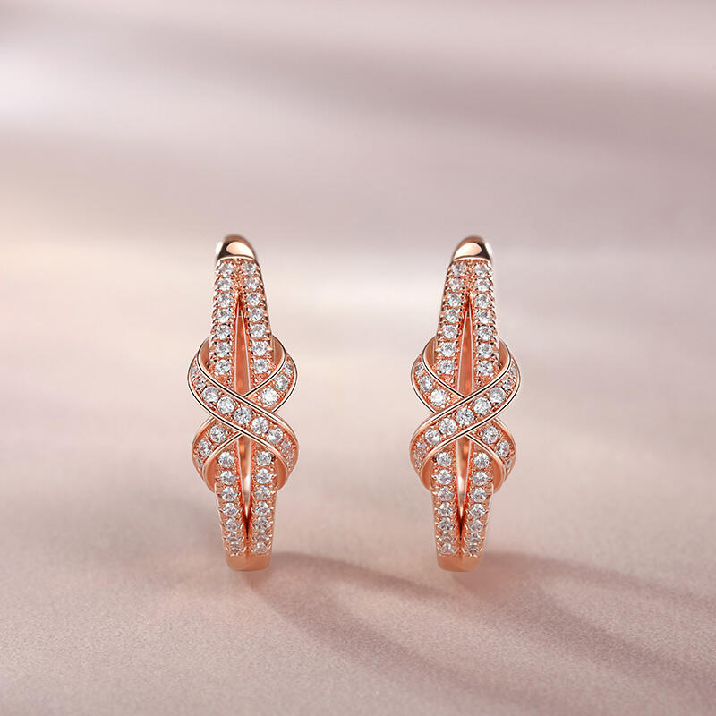Embrace your individuality and make a statement with these hoop Earrings. Crafted in rose-gold tone sterling silver, each earring is set with sparking round-cut stones and decorated with a sparkling white stones X motif. These simple hoop earrings embody a simple and classy aesthetic, complementing your minimalist and unique style. Whether worn alone or layered with a charm necklace, they offer a chic look that is sure to turn heads.