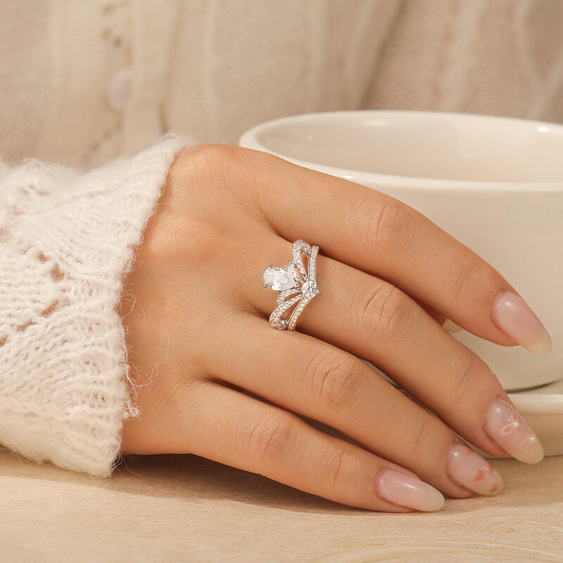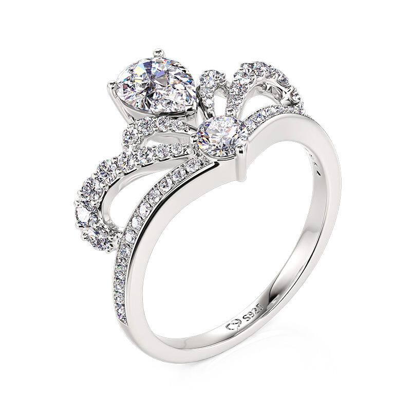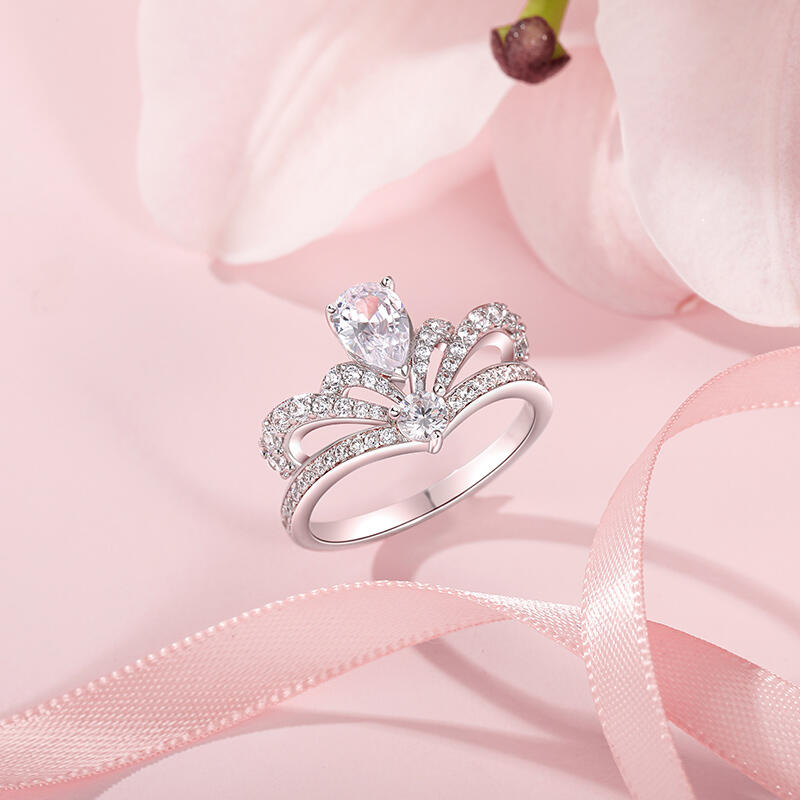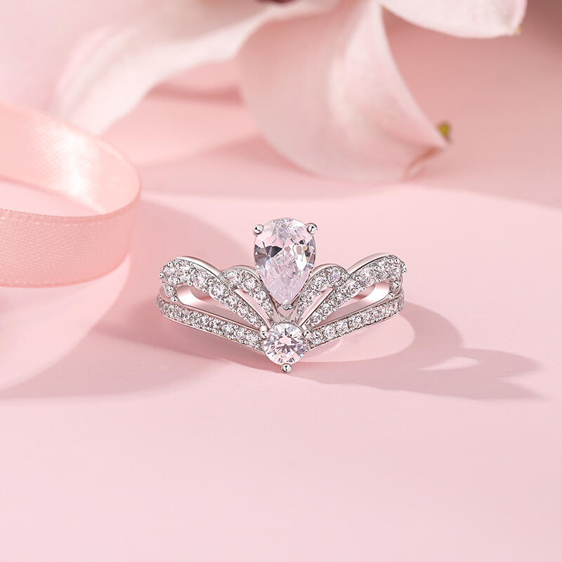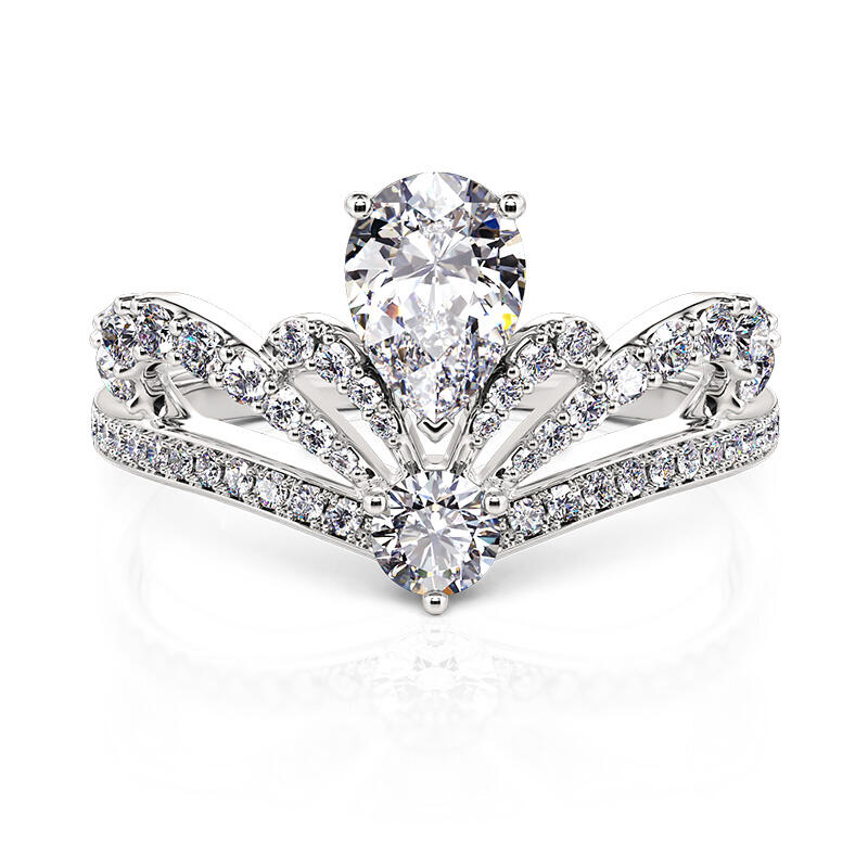 Jeulia Crown Design Engagement Ring Pear Cut Sterling Silver