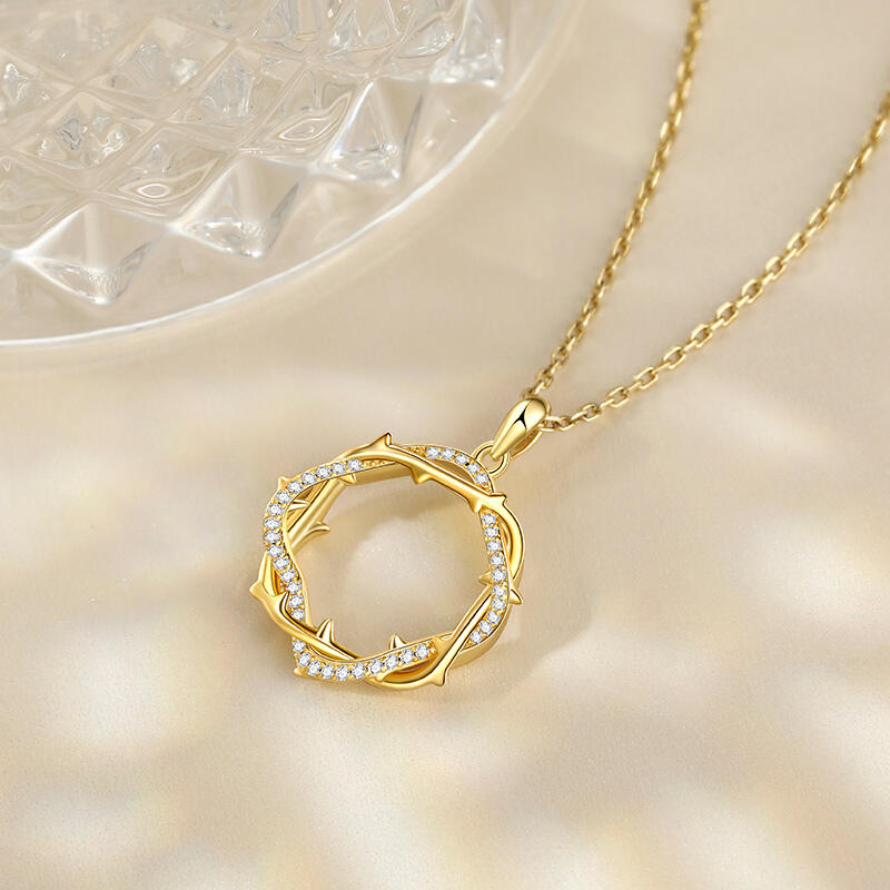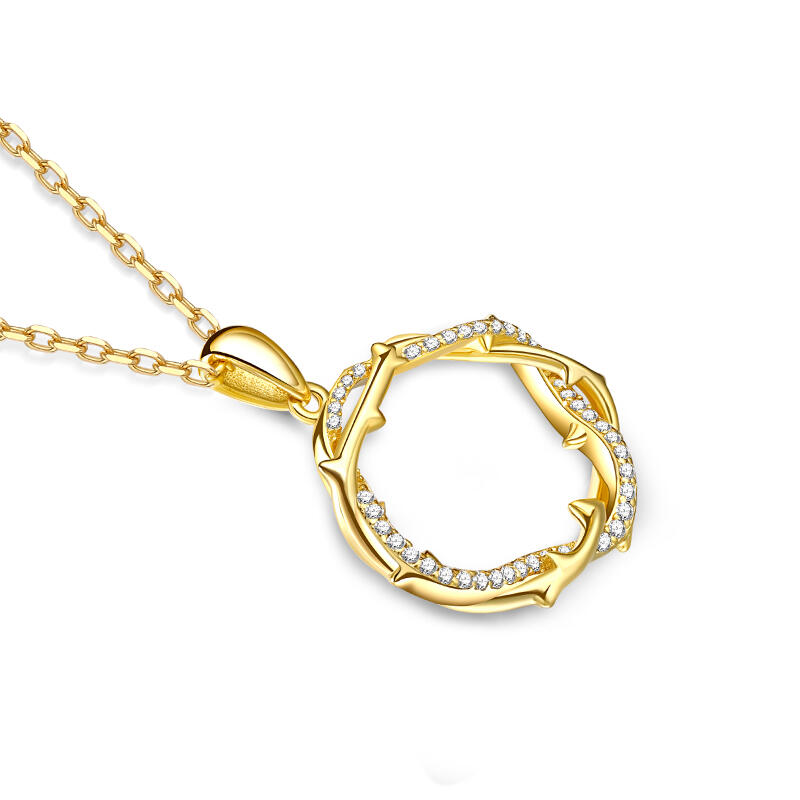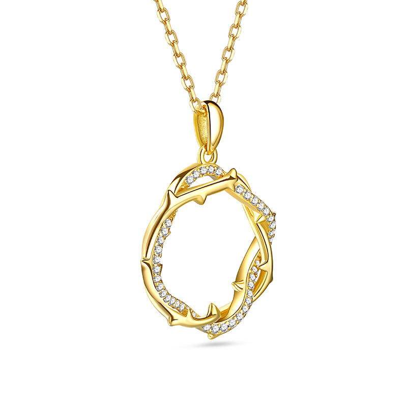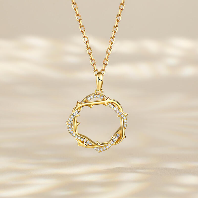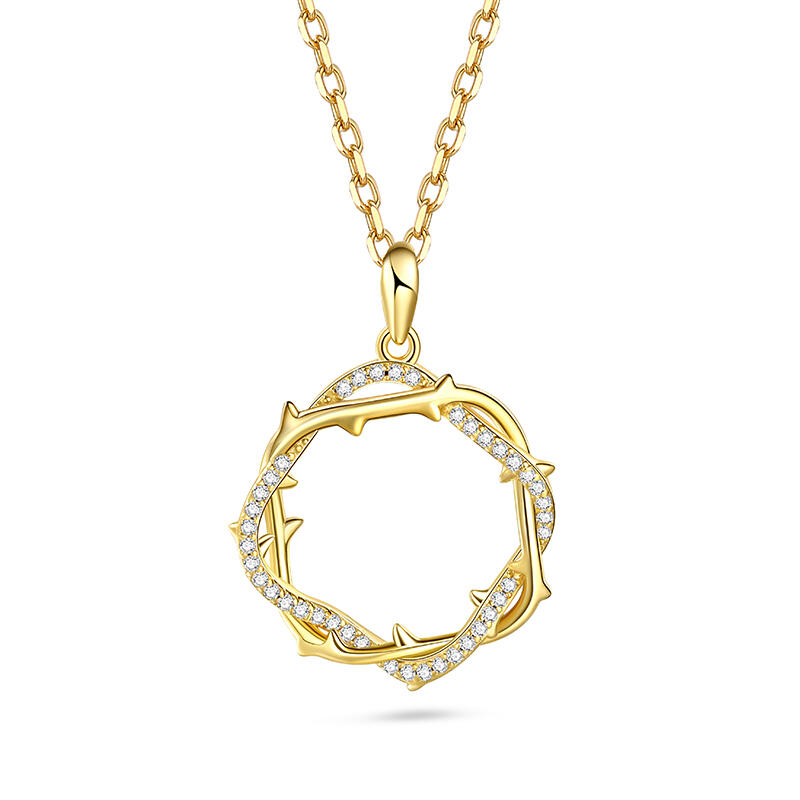 Crafted in gold-tone sterling silver, this elegant necklace features a detailed Crown of Thorns pendant. This Christian necklace makes the perfect Easter gift that can be worn year round.
