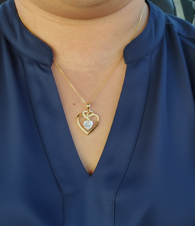 The Jeulia Custom Classic Twist Heart Necklace features a golden heart frame that glimmers with pavé-set white zircons, cradling a central heart-shaped clear gem that floats like a captured sigh. The chain drapes with effortless grace, its links echoing the frame’s delicate curves. Customize the metal’s warmth or the stones’ hue—from frosty silver to rose gold dawn—to mirror your love’s unique language.