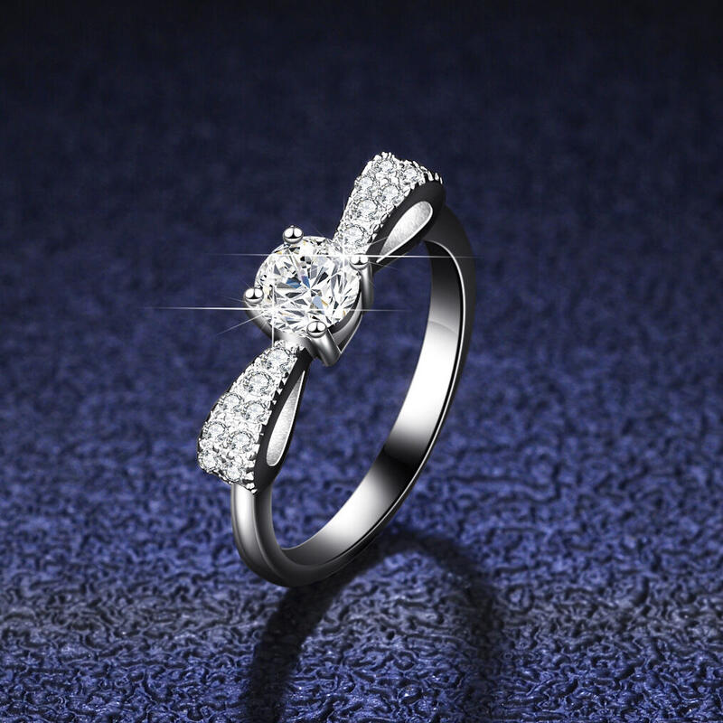 Symbolize your love story with the Jeulia Cute Bowknot Round Engagement Ring. Crafted in sterling silver, this engagement ring features a brilliant round - cut center stone held by classic prongs. The band showcases a charming bowknot design, lined with milgrain round - cut accents that add delicate sparkle. What makes it more special is the tapered shank, creating an elegant silhouette that fits comfortably and adds a touch of modern, refined aesthetics. This silver engagement ring blends timeless romance with a playful, feminine touch and contemporary design elements—perfect for sealing your forever promise.