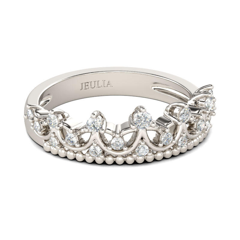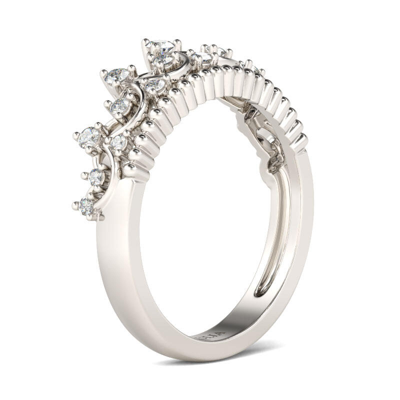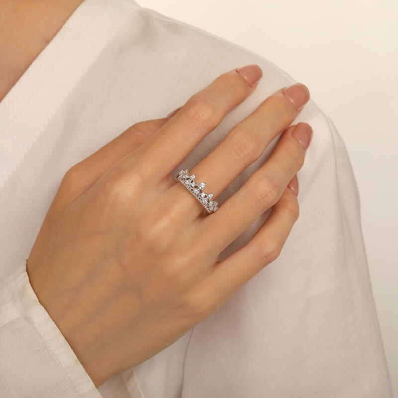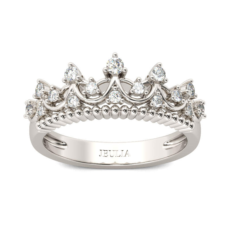 Treat your princess to a dazzling crown ring that perfectly fits her personality. Crafted in sterling silver, this cute ring is topped with a crown and scattered with shimmering round stones. Beautiful and sweet, this royal choice is sure to be adored.