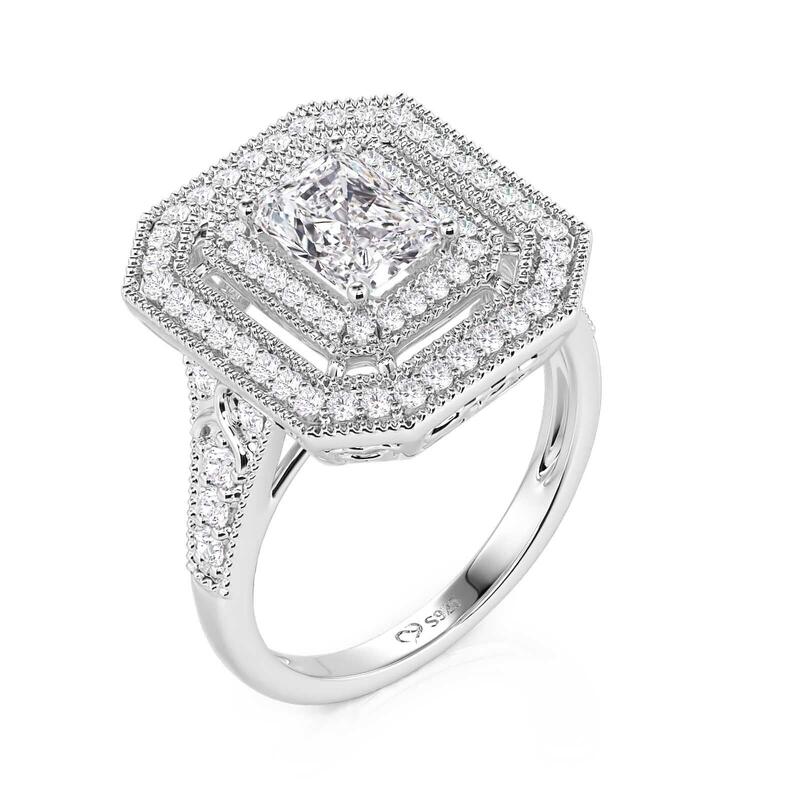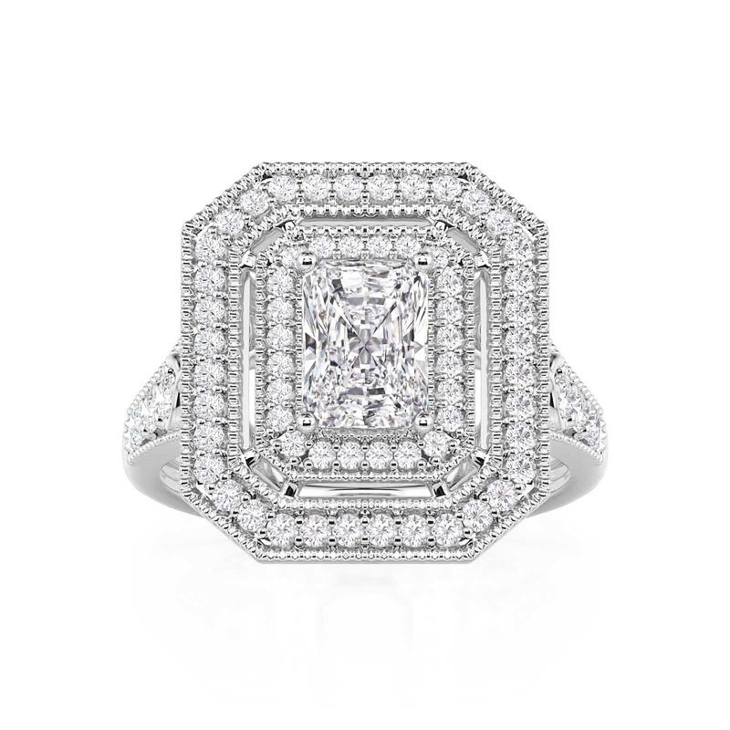 Jeulia Double Halo Beaded Edge Engagement Ring