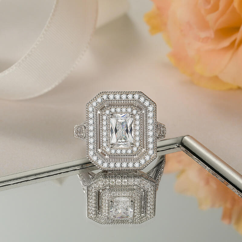 Jeulia double halo beaded edge engagement ring is a breathtaking blend of elegance and sophistication. Crafted with meticulous attention to detail, this engagement ring features a stunning double halo design that beautifully encircles a central stone, enhancing its brilliance. The beaded edge adds a touch of vintage charm, while the intricate accents and shimmering details create a luxurious look. This double halo engagement ring is perfect for making a memorable statement and symbolizes a love that is both timeless and modern. Celebrate your commitment with the Jeulia Double Halo Beaded Edge Engagement Ring—an exquisite expression of love, destined to be cherished forever. This vintage engagement ring is ideal for those seeking a standout piece that reflects their unique journey together.