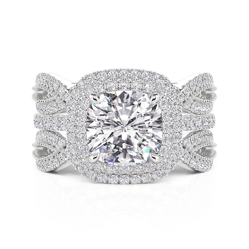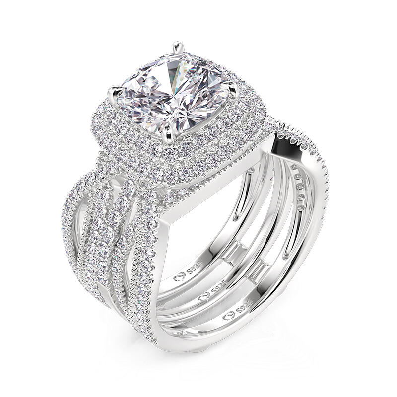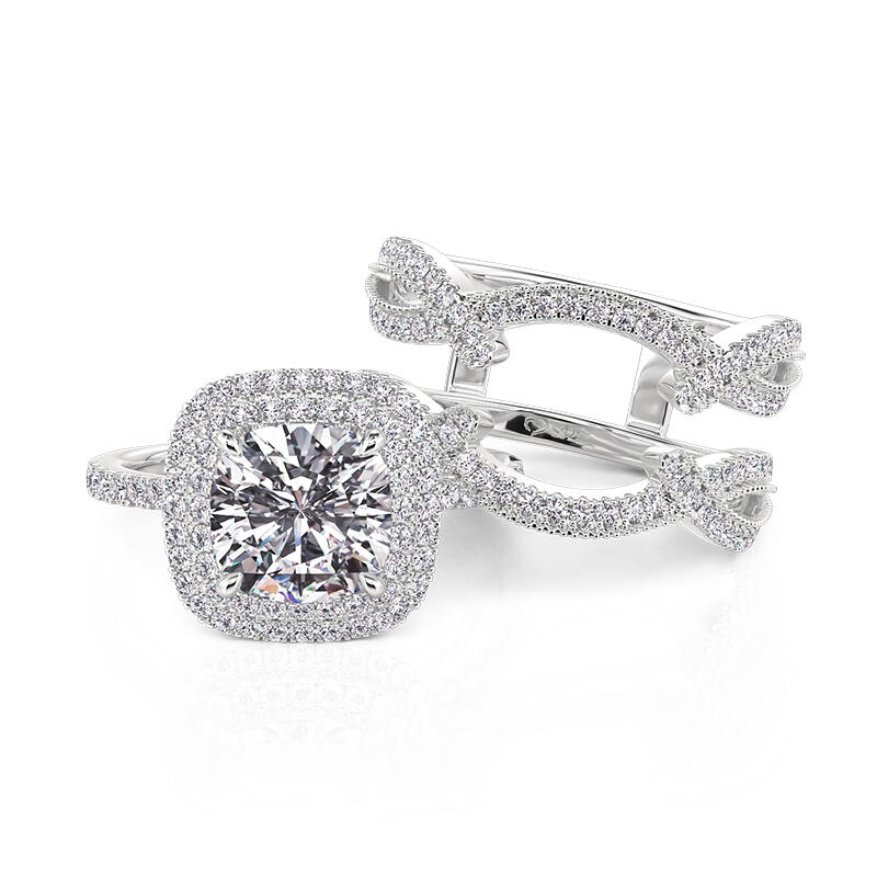 Jeulia Double Halo Inset Wedding Ring Set Sterling Silver