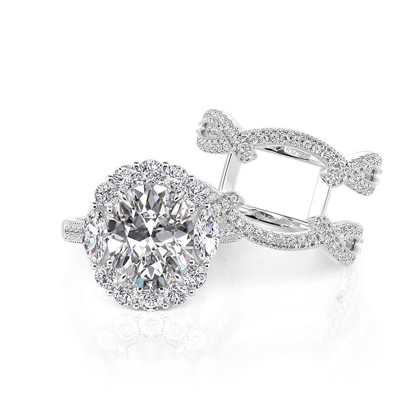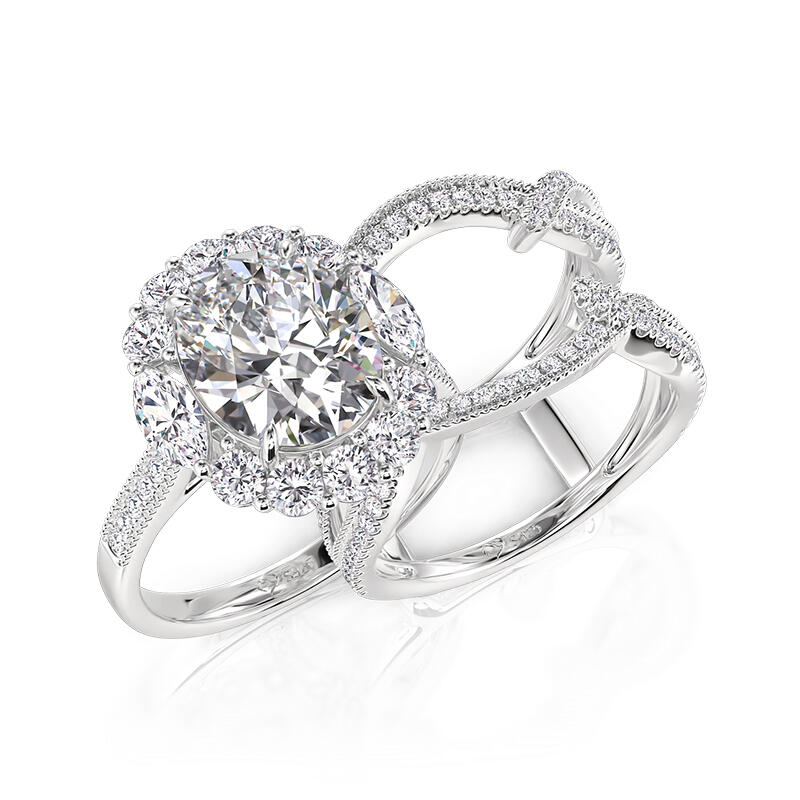 Jeulia Elegant Sparkling Halo Oval Engagement Ring Set 2PC