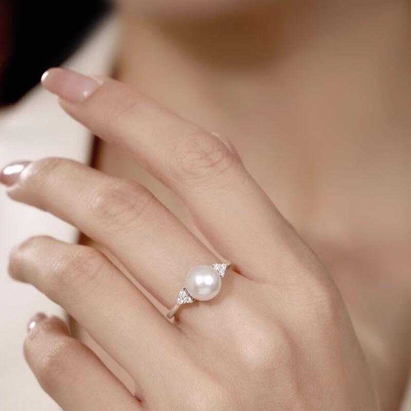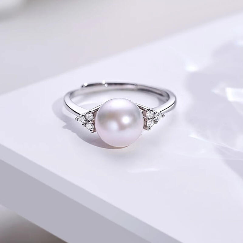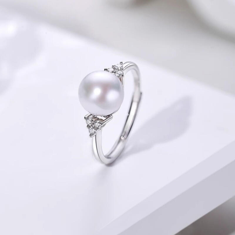 Jeulia Elegant White Pearl Sterling Silver Adjustable Ring