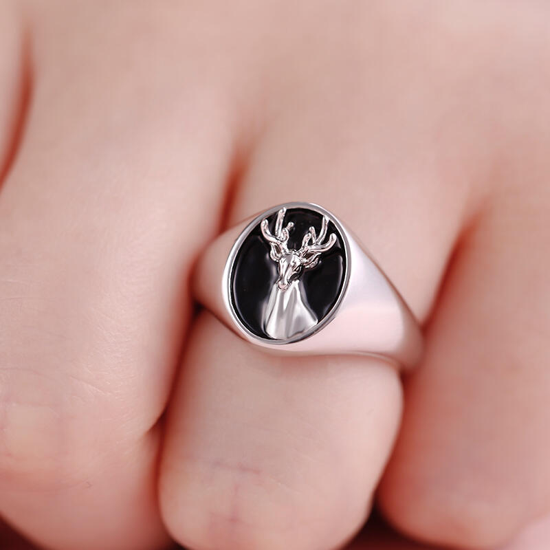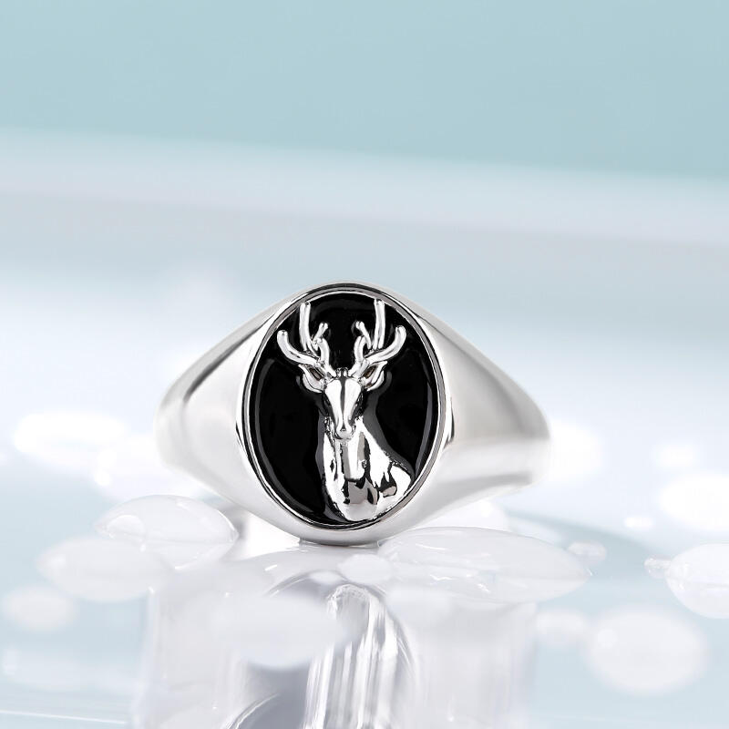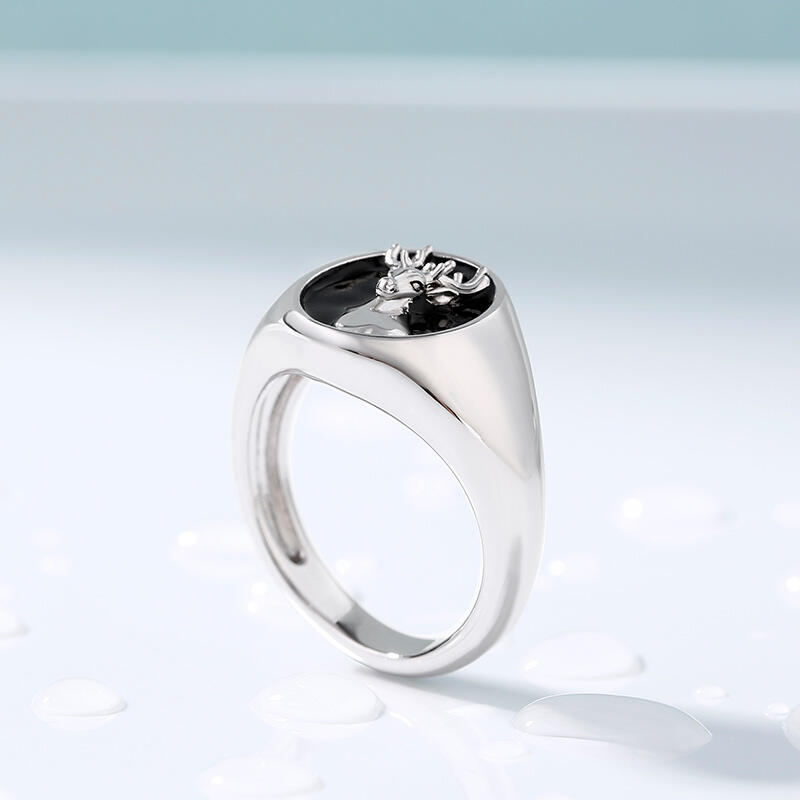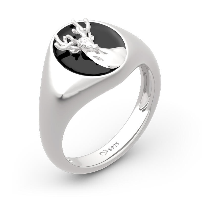 Jeulia "Elk Forest" Sterling Silver Signet Ring
