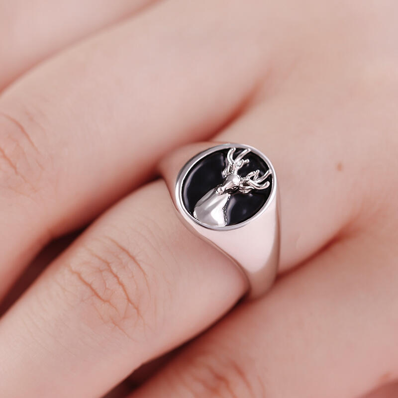 Symbolism is always a key component when it comes to signet rings. Elk is the symbol of pride, strength and stamina, engraved here onto the flat surface. Crafted in sterling silver, this neutral accessory has an impressive level of detail. Wear on its own - the exquisite amount of detail requires no additional accessorizing or style to help finish off an outfit to perfect.