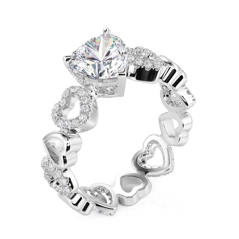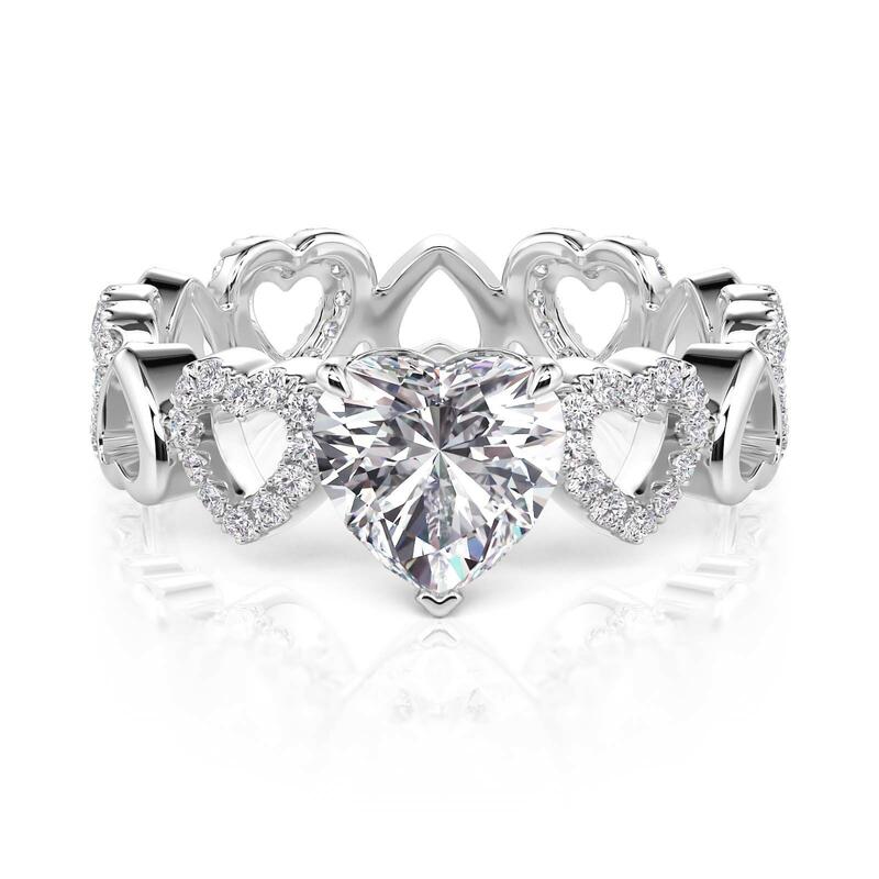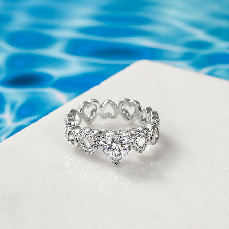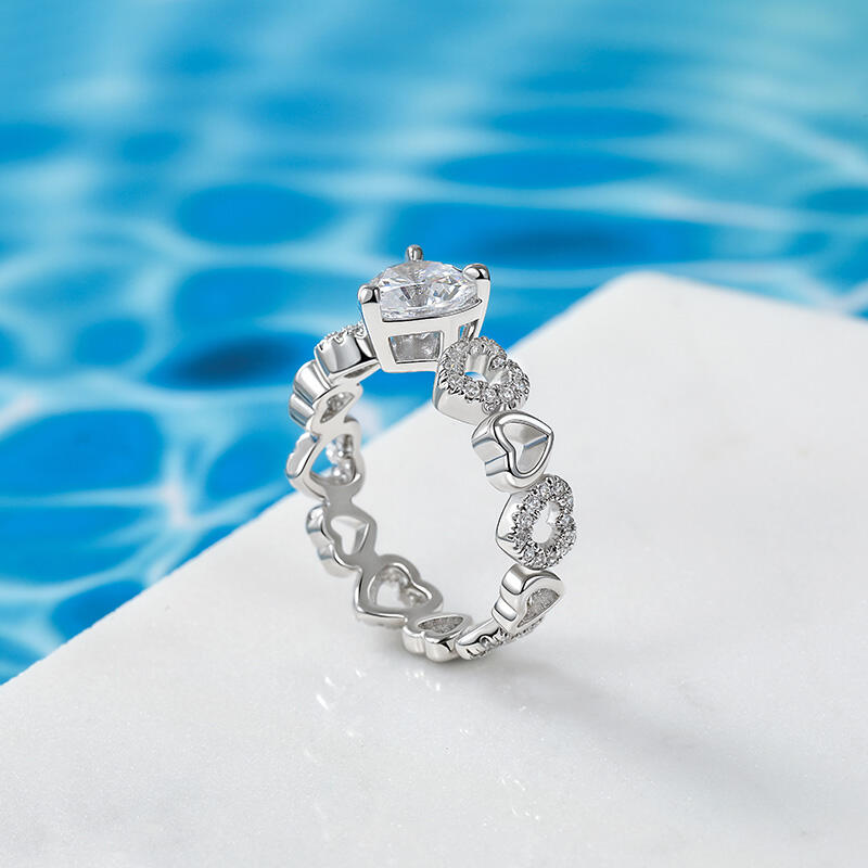 Jeulia Fine Hollow Design Heart Solitaire Eternity Band Sterling Silver