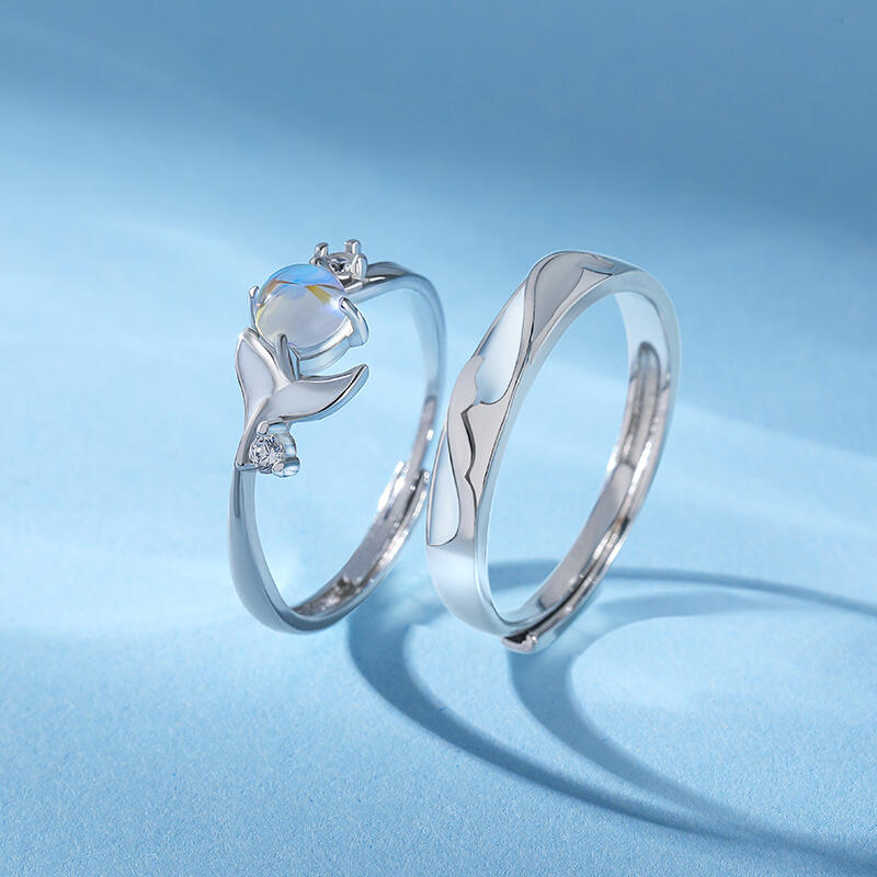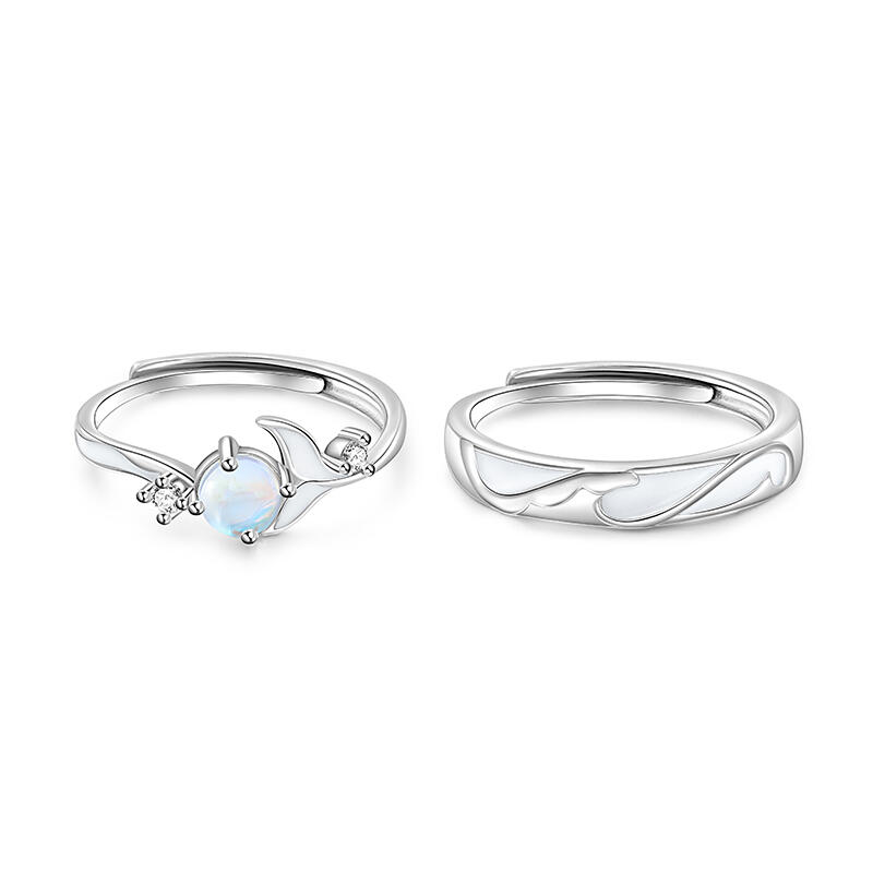 Jeulia Glowing Band Glazestone Adjustable Sterling Silver Couple Rings