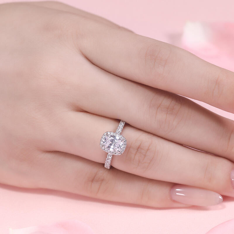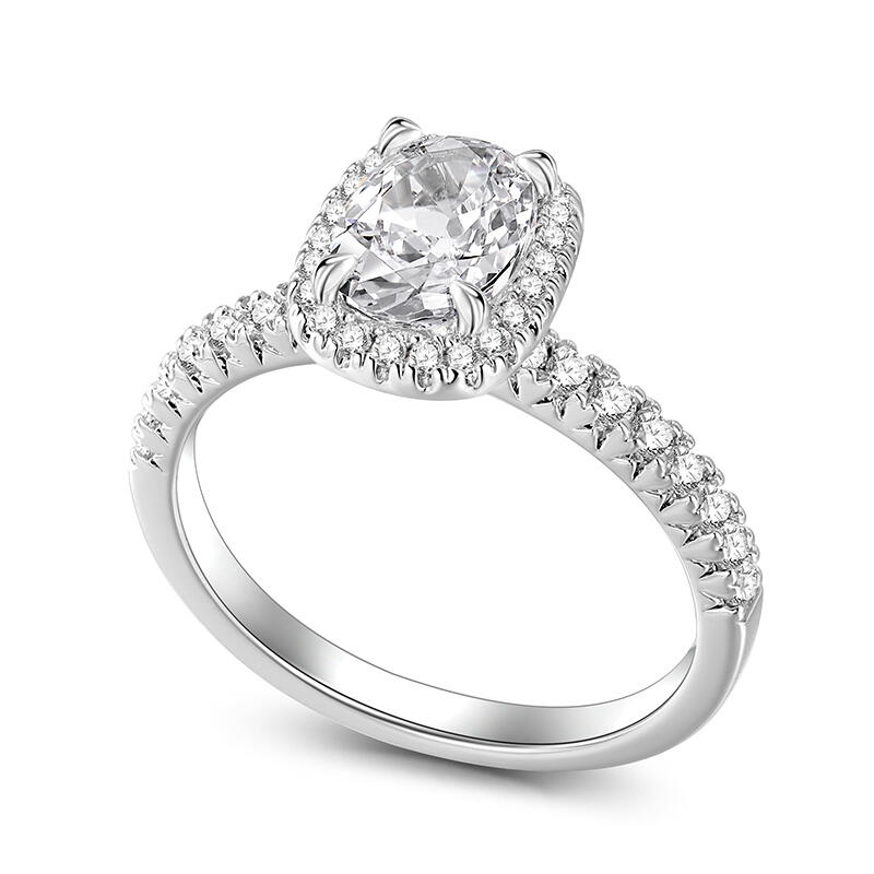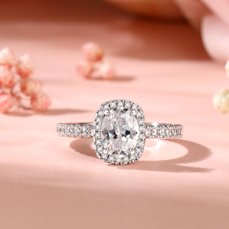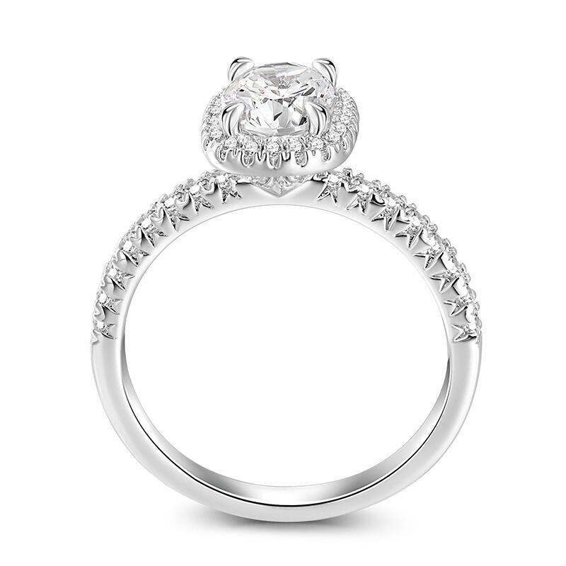 Jeulia Halo Oval Cut Sterling Silver Engagement Ring