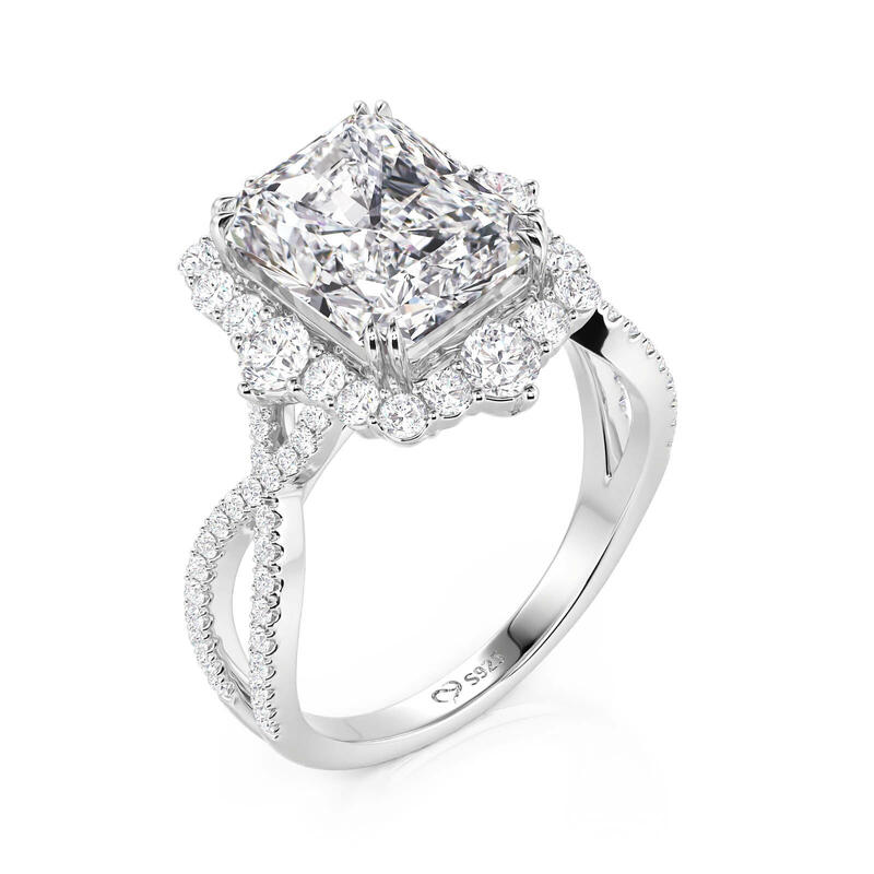 Jeulia Halo Radiant Cut Twist Engagement Ring Sterling Silver