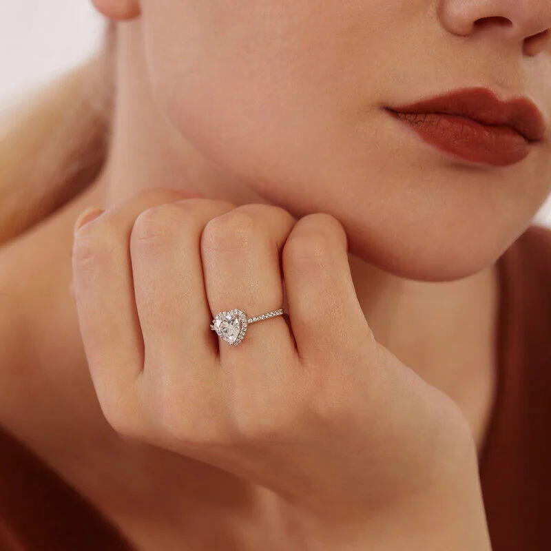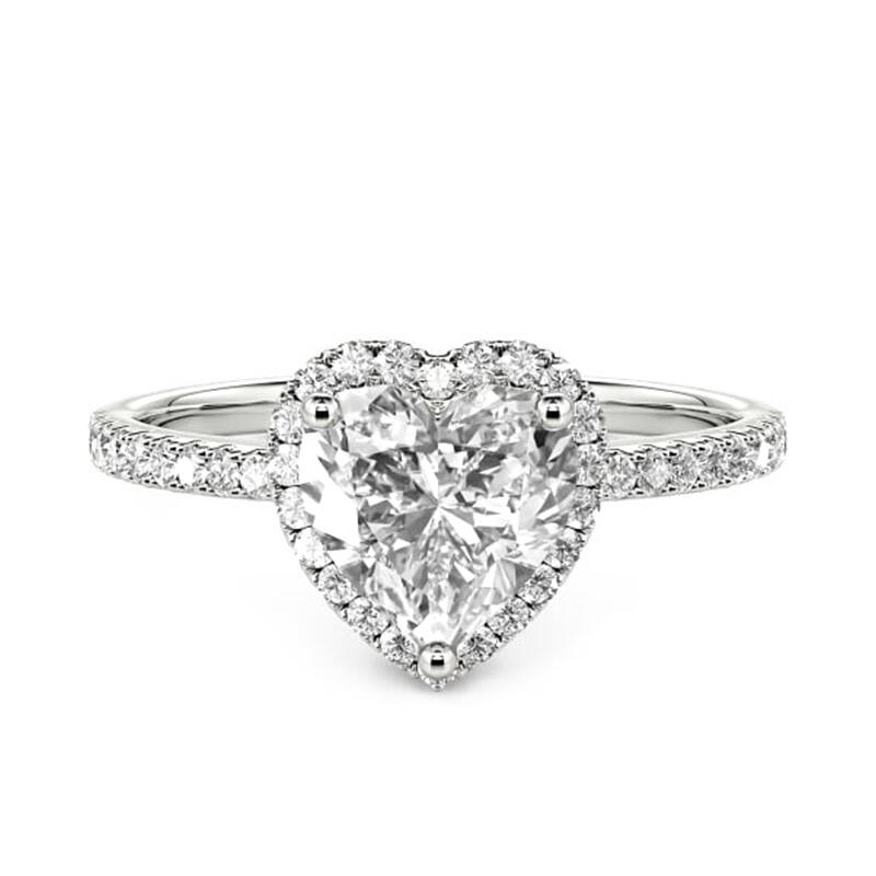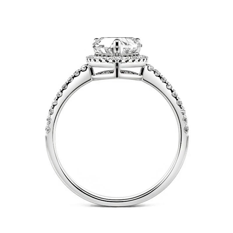 Surrounded by a circle of sparkling stones, the center stone is highlighted as a whole. With exquisite and elegant design, this heart halo engagement ring is full of loyalty to wear. You are my everything, giving my heart to you is the most romantic thing in my life.