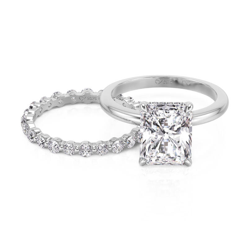 Jeulia Hidden Halo Princess Cut Engagement Ring Set