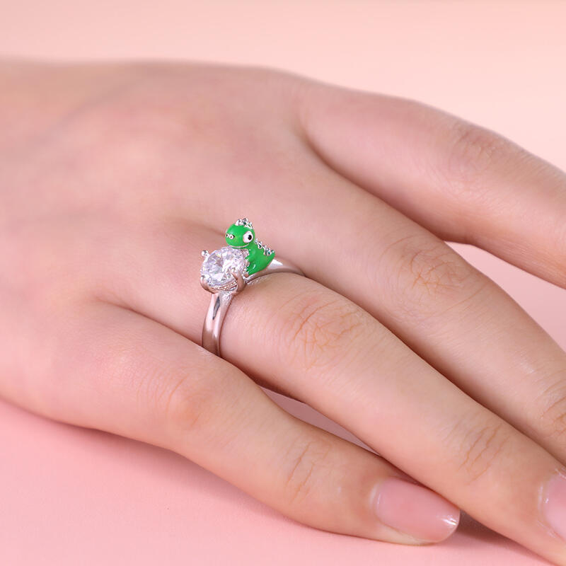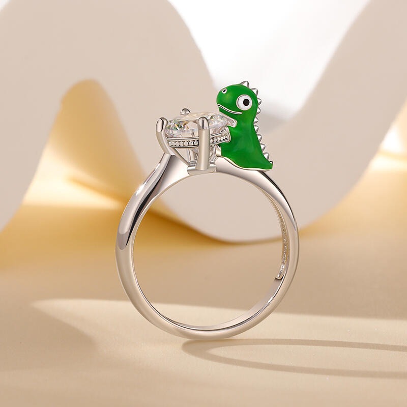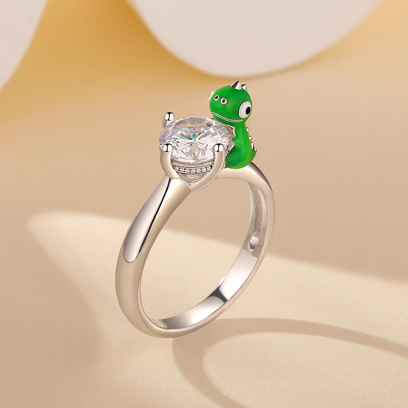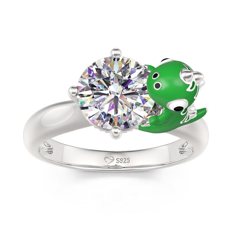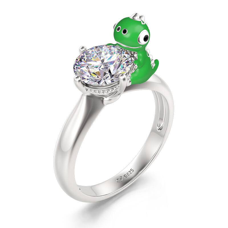 Jeulia Hug Me "Cartoon Dinosaur" Round Cut Sterling Silver Ring