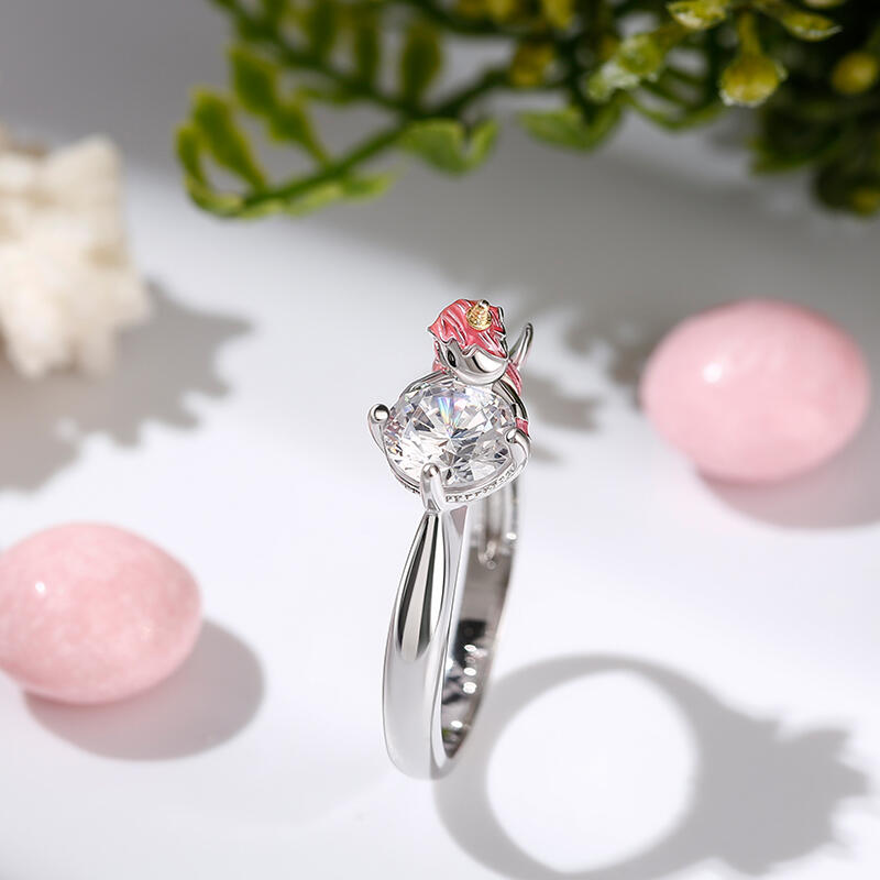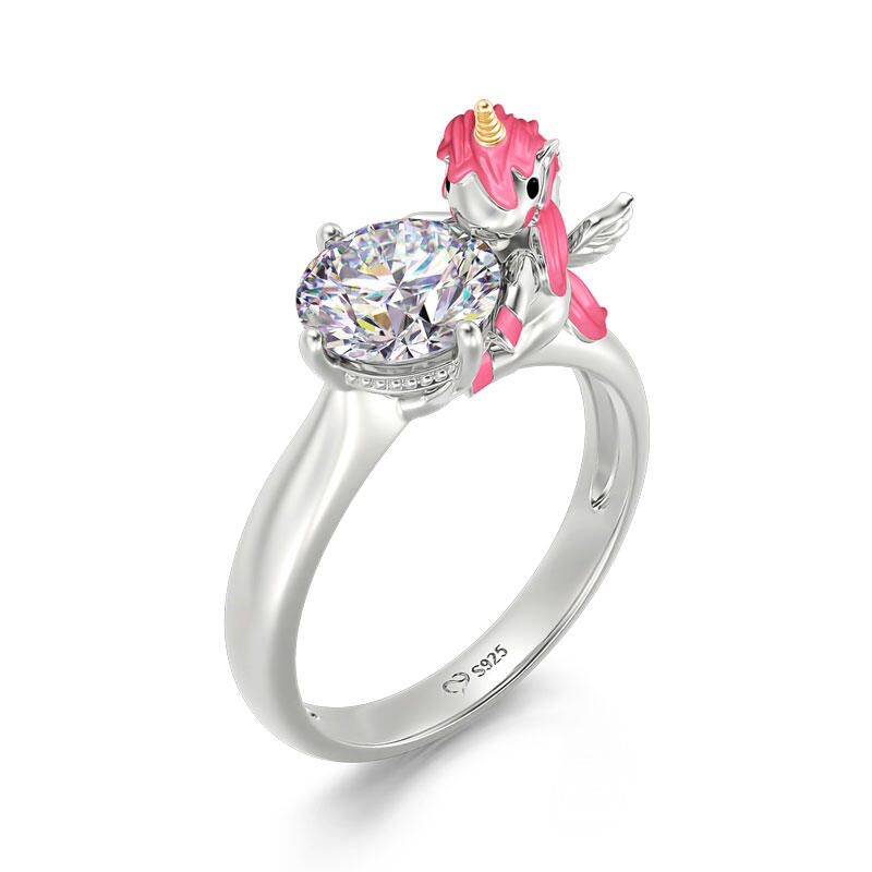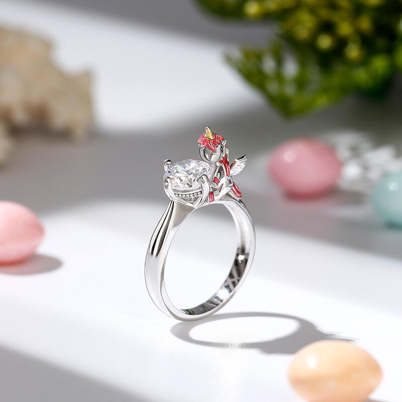 Jeulia Hug Me "Dreams Come True" Cute Animal Unicorn Round Cut Sterling Silver Ring