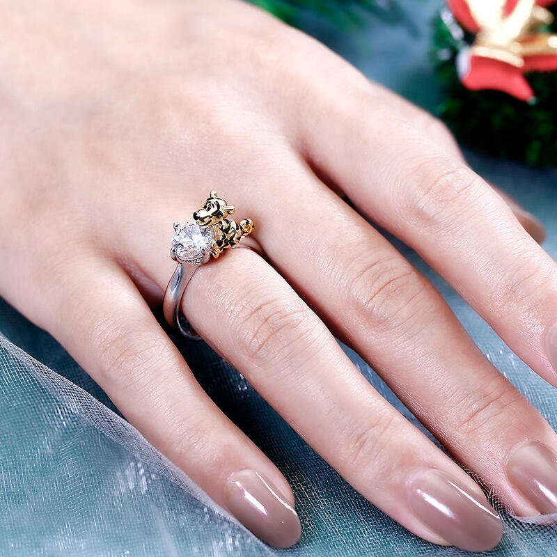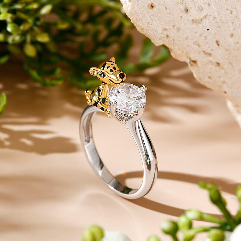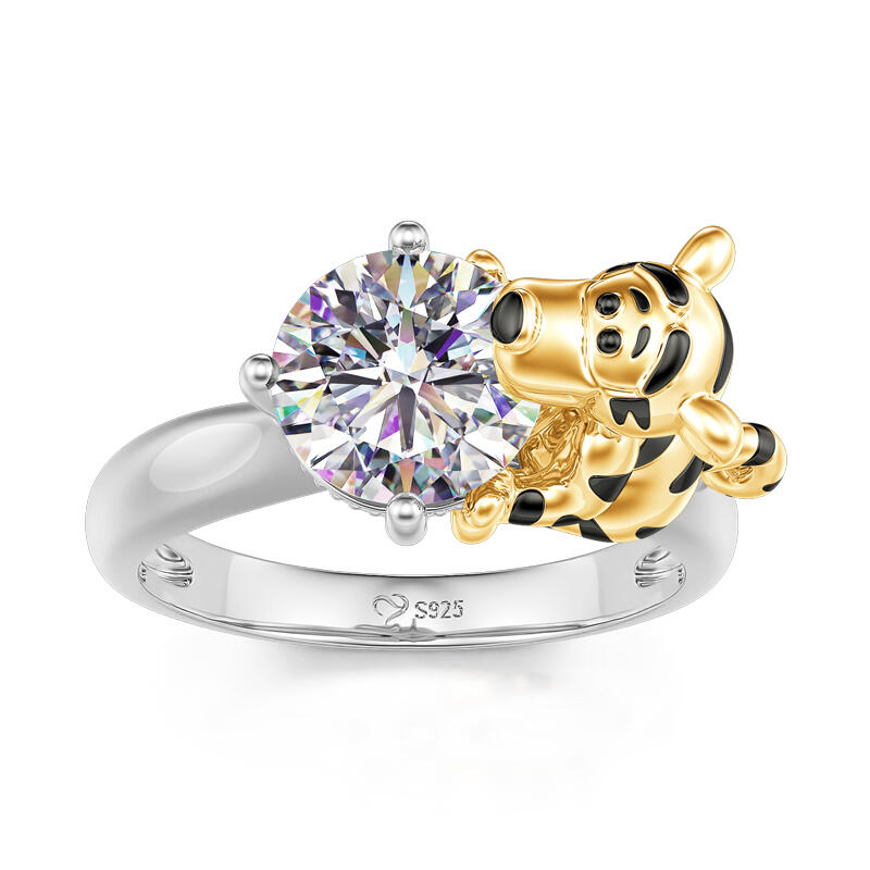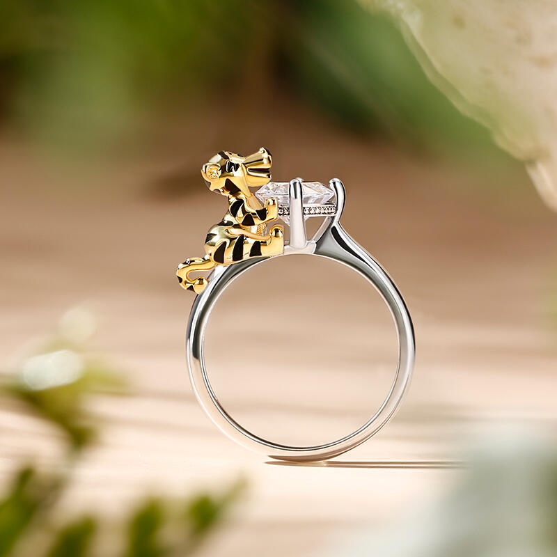 Jeulia Hug Me "King of the Forest" Tiger Round Cut Sterling Silver Ring
