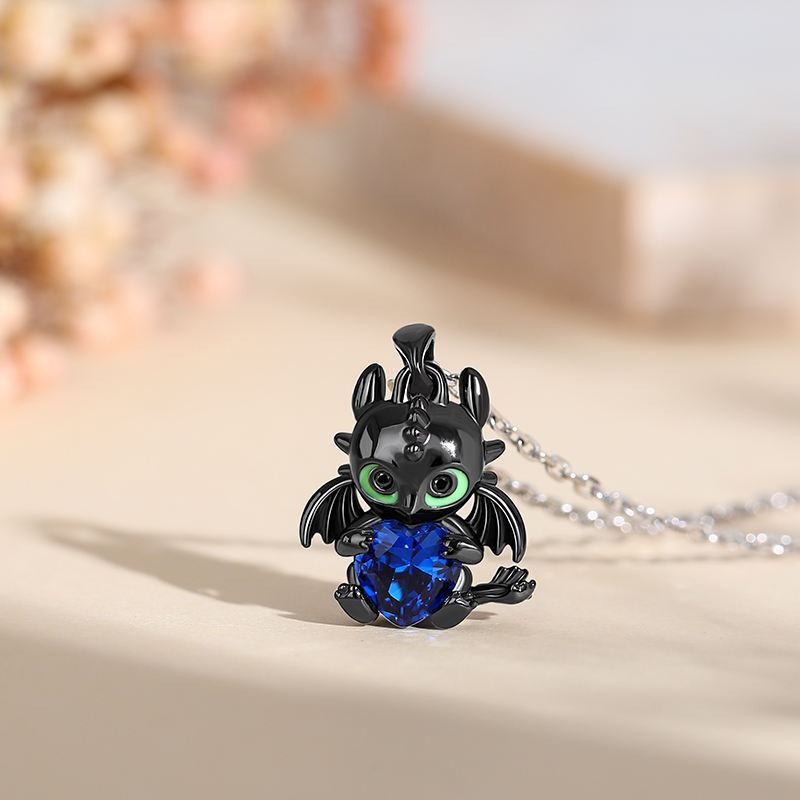 Playful, inquisitive and intelligent, this fictional dragon is indisputably special. Beautifully handcrafted in sterling silver, this necklace in Hug Me® collection features a brilliant heart cut stone hugged by a dragon, which is designed to be so lovely and super-cute. His 3D wings, ears and bright green eyes are captured in amazing detail as he on your neck. You will find more adorable and creative designs in our Hug Me® collection.