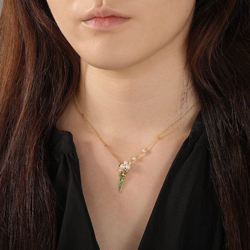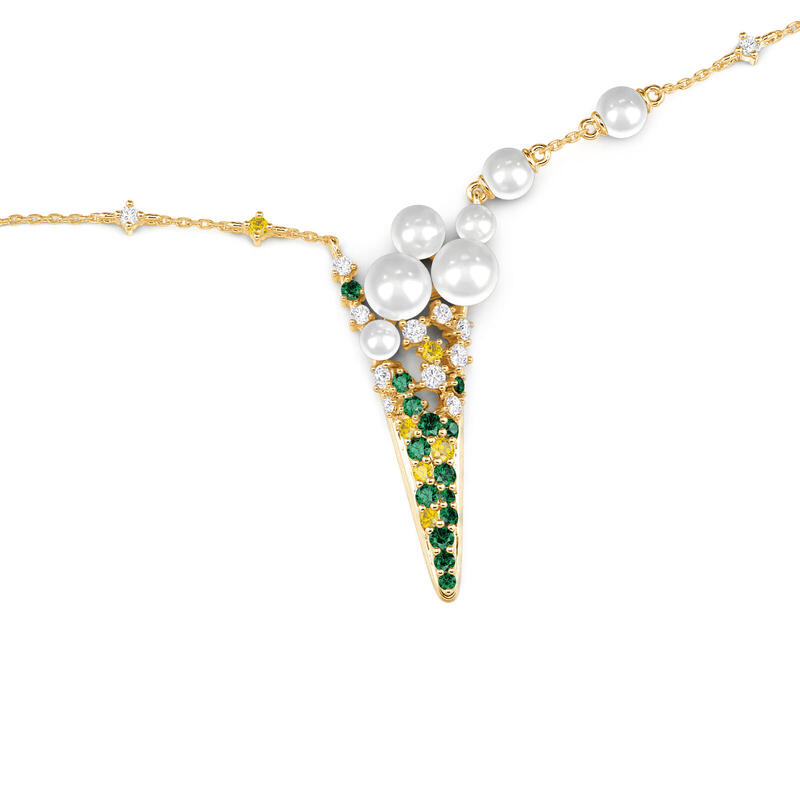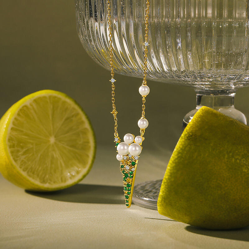 The Jeulia Ice Cream Inspired Gold Pearl Necklace is a delightful and whimsical piece that captures the essence of summer fun. Crafted from high-quality gold-tone sterling silver, this pendant features a charming ice cream cone design adorned with lustrous pearls and vibrant green and yellow gemstones. The combination of shimmering pearls and the fresh, lively colors of the stones evokes the joy of sunny days and sweet summer treats. Imagine wearing this ice cream necklace at a summer picnic or a beach gathering, where it catches the sunlight and adds a playful sparkle to your outfit. With its unique design, this gold necklace embodies the carefree spirit of the season, making it an ideal accessory for those who embrace individuality and creativity. The Jeulia Ice Cream Inspired Gold Pearl Necklace is not just a piece of jewelry; it’s a joyful celebration of summer, perfect for adding a touch of whimsy and elegance to any ensemble.