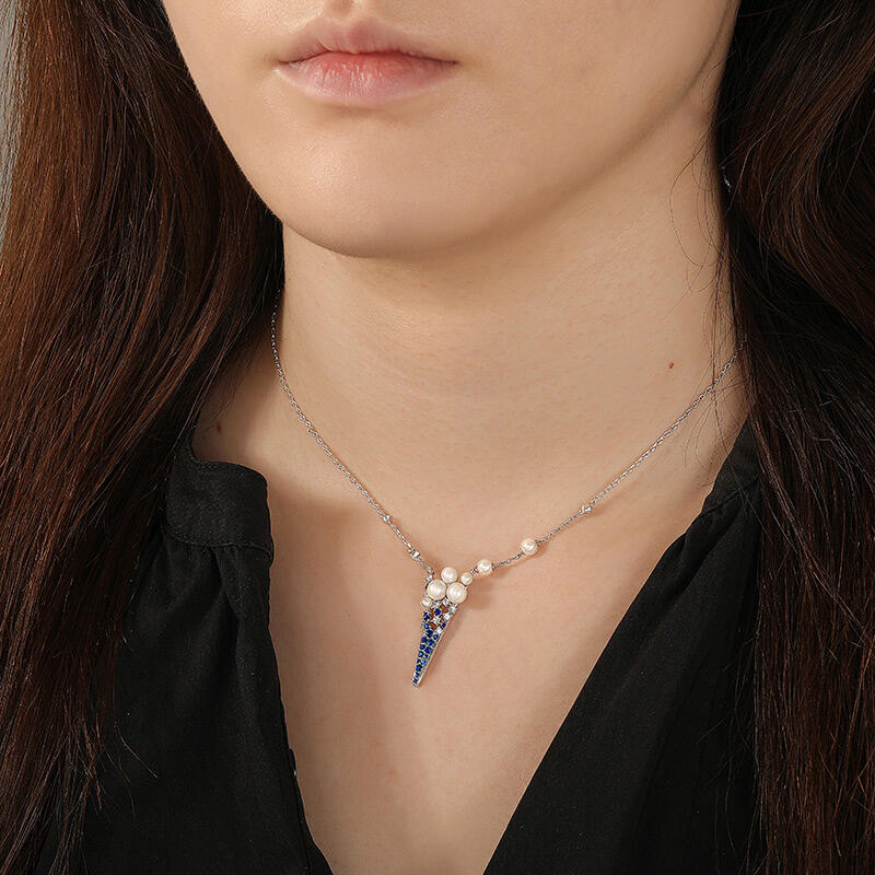 The Jeulia Ice Cream Inspired Silver Pearl Necklace is a whimsical and elegant piece that perfectly encapsulates the joy of summer. Crafted from high-quality sterling silver, this pendant features a delightful ice cream cone design adorned with lustrous pearls and vibrant gemstones. The combination of shimmering pearls and rich blue stones creates a striking contrast that evokes the refreshing essence of summer treats. Imagine wearing this ice cream necklace on a sunny day, complementing your favorite summer dress or beach outfit, as it catches the light and adds a playful sparkle. With its unique design, this silver pearl necklace captures the carefree spirit of warm days and sweet indulgence, making it an ideal accessory for summer gatherings, picnics, or outings with friends. The Jeulia Ice Cream Inspired Silver Pearl Necklace is not just a piece of jewelry; it’s a charming statement that celebrates individuality and the vibrant energy of the season.