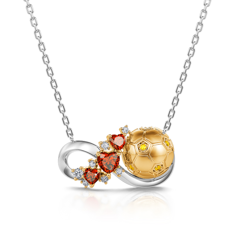 Show the world what your favorite sport is with this awesome football necklace! football wrapped in an infinity symbol with red hearts through the middle of the infinity symbol. The infinity symbol lends gravitas to your emotions and helps you express exactly how you feel with a universally recognized sign for a deep connection. Made in sterling silver with brilliant stones, this necklace is the perfect gift for football fans. Never miss it.