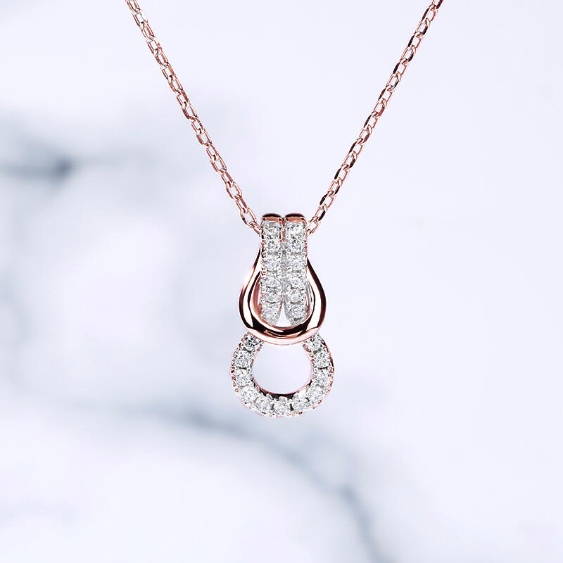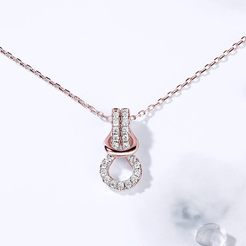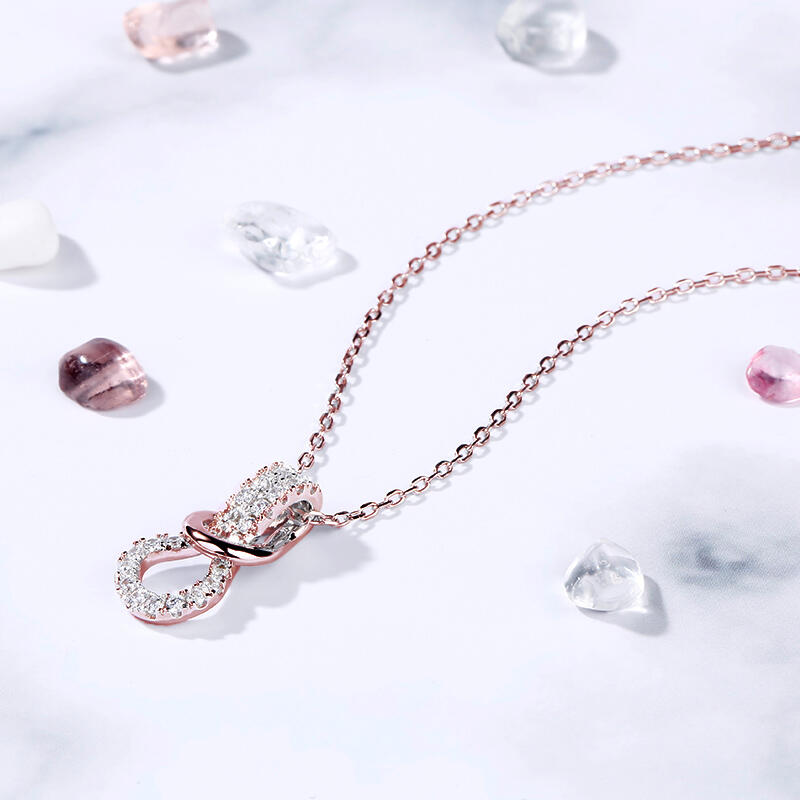 A brilliant way to show her your love is forever, this dainty necklace will certainly touch her heart. This meaningful design showcases two ribbons interlocked for a infinity symbol-shaped look, while shimmering round stones add eye-catching sparkle to the design. This elegant necklace makes a stunning statement of everlasting love.