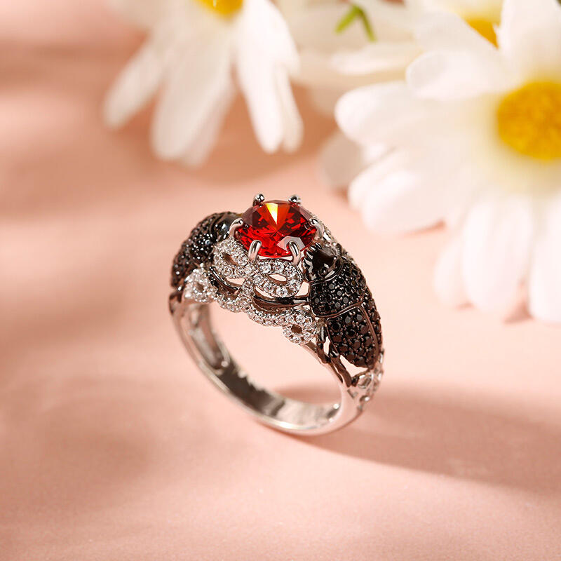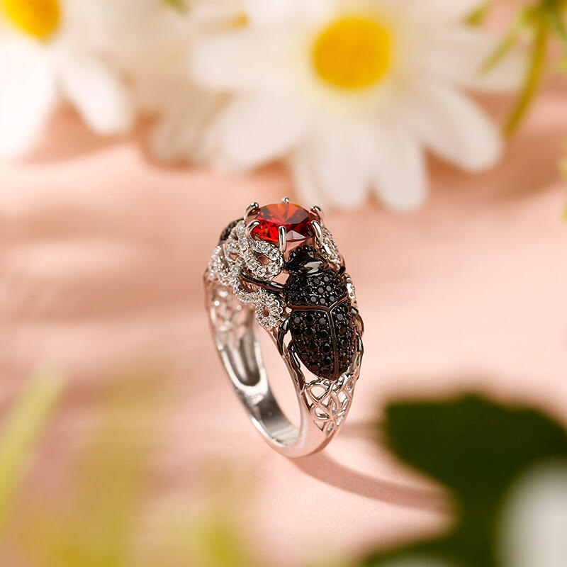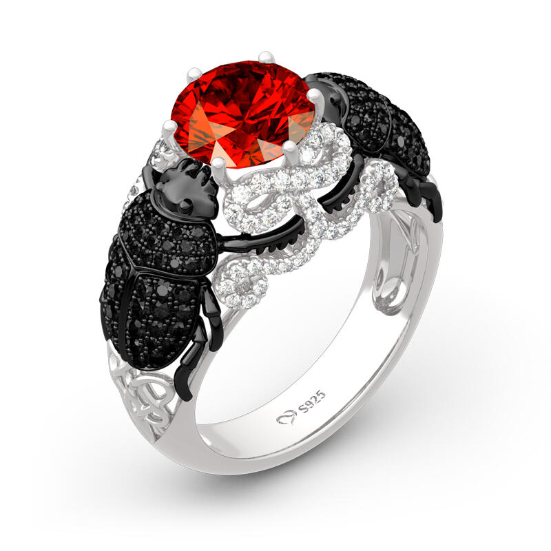 Jeulia "Insect Magic" Scarab Design Round Cut Sterling Silver Ring