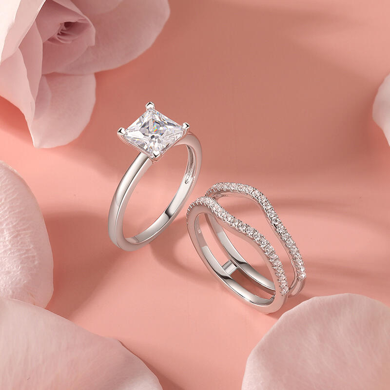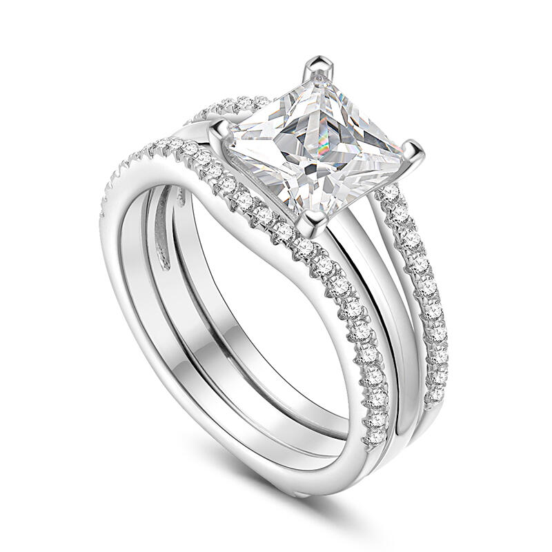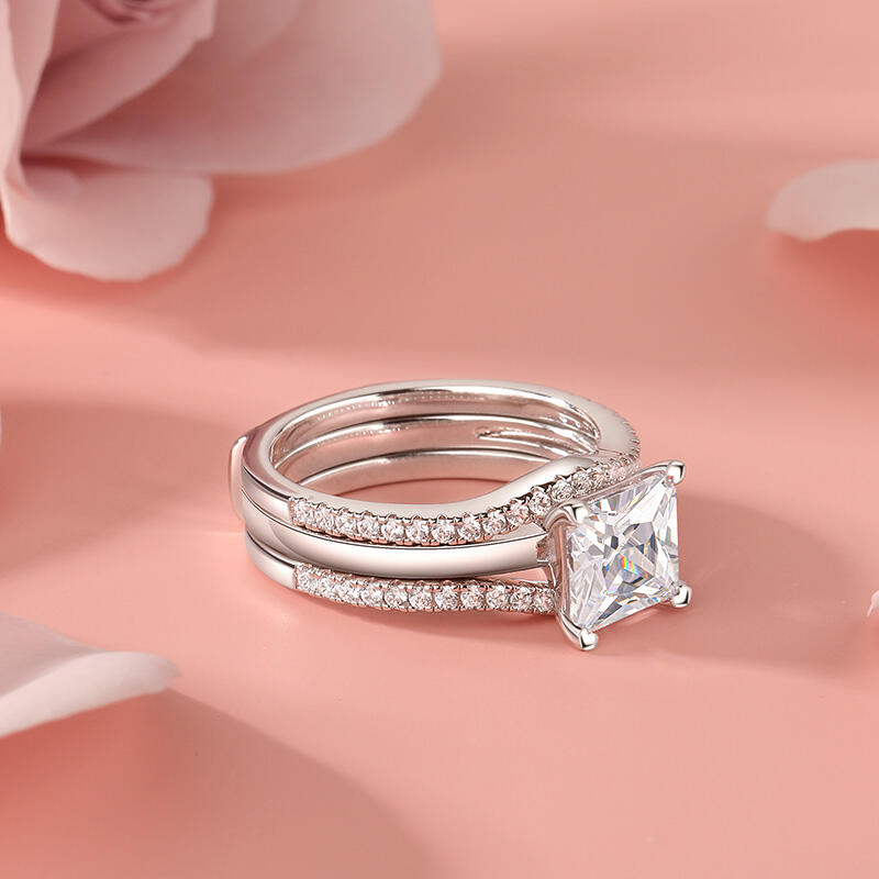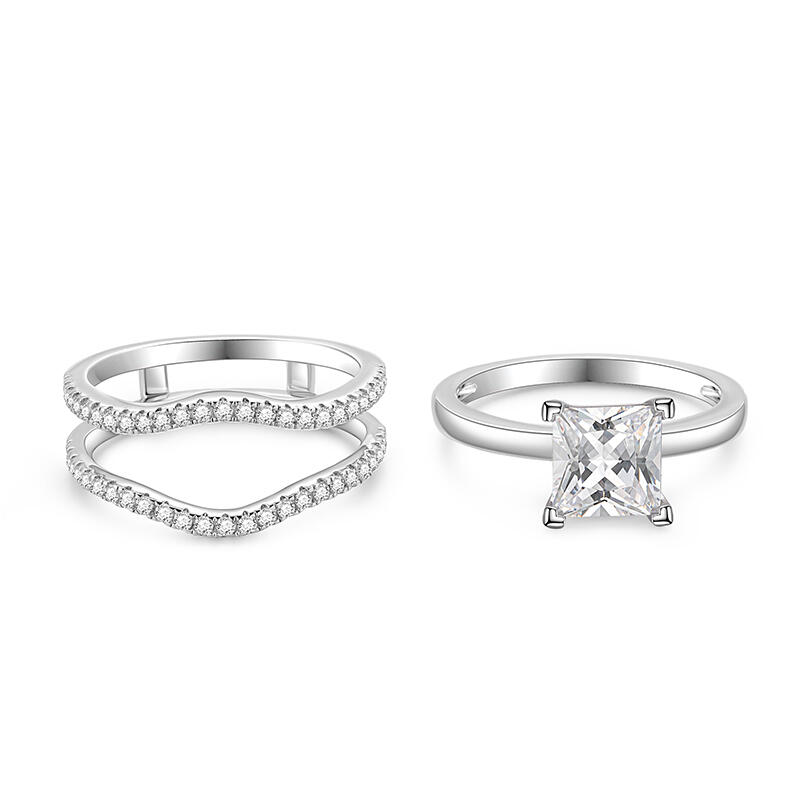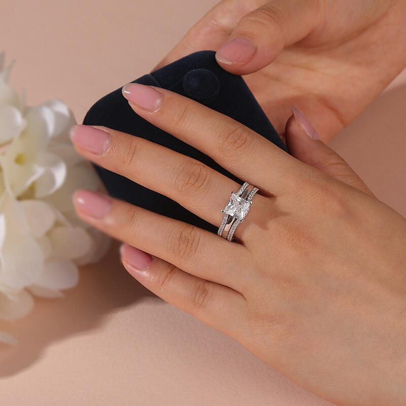 Jeulia Interchangeable Princess Cut Engagement Ring Set Sterling Silver