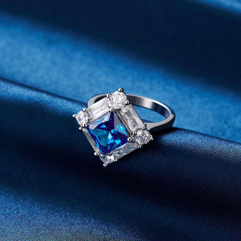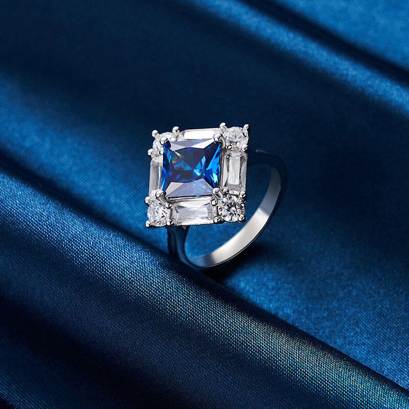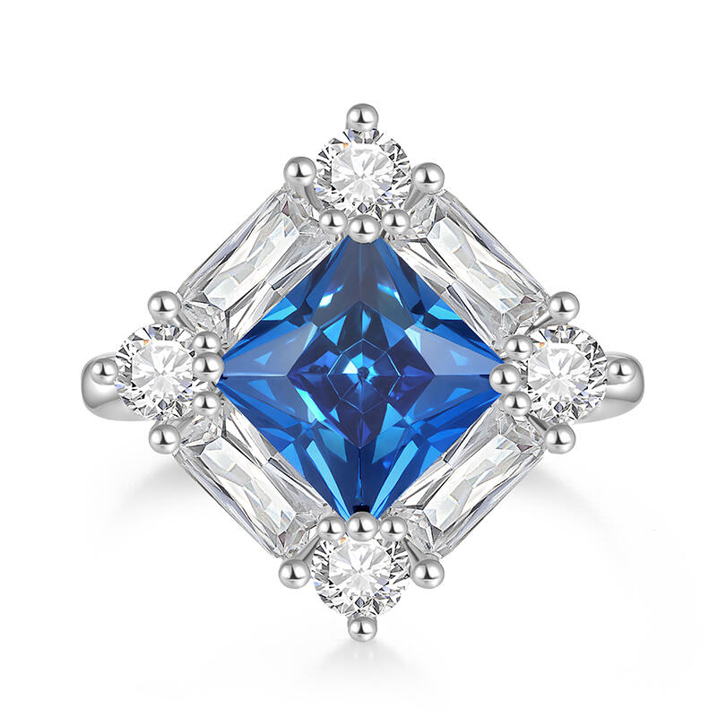 Jeulia Irregular Halo Sapphire Princess Engagement Ring