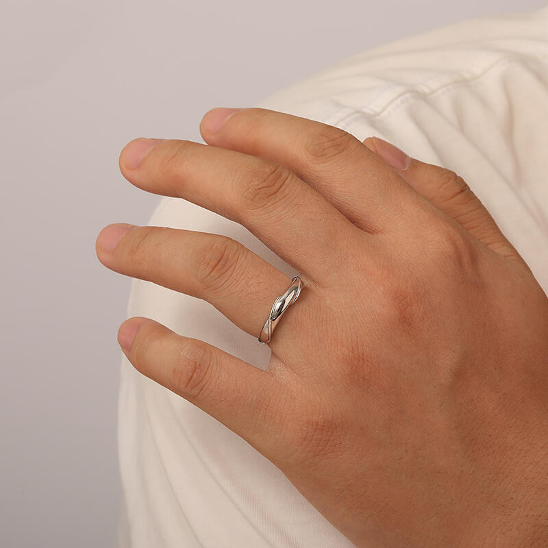 This men's wedding band embodies a timeless yet contemporary aesthetic, meticulously crafted from shimmering silver metal. This elegant men's twist ring sleek and polished surface emanates a refined brilliance, seamlessly blending elegance with durability to symbolize both strength and reliability in the vows it represents. Uniquely, this simple man's wedding ring boasts a minimalist twist design that adds a subtle yet modern touch, making it a standout statement piece for the discerning gentleman.