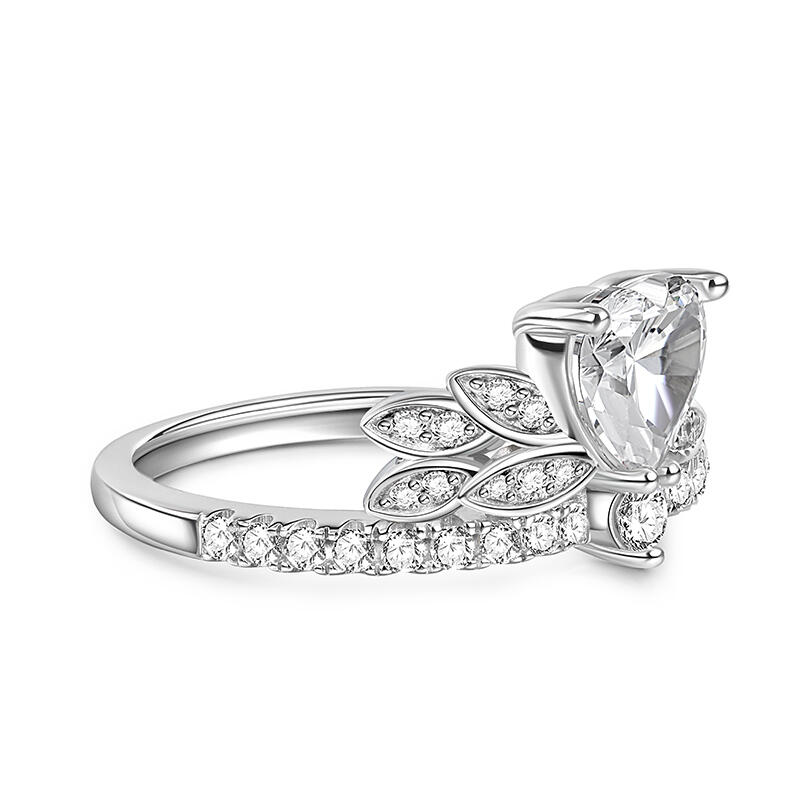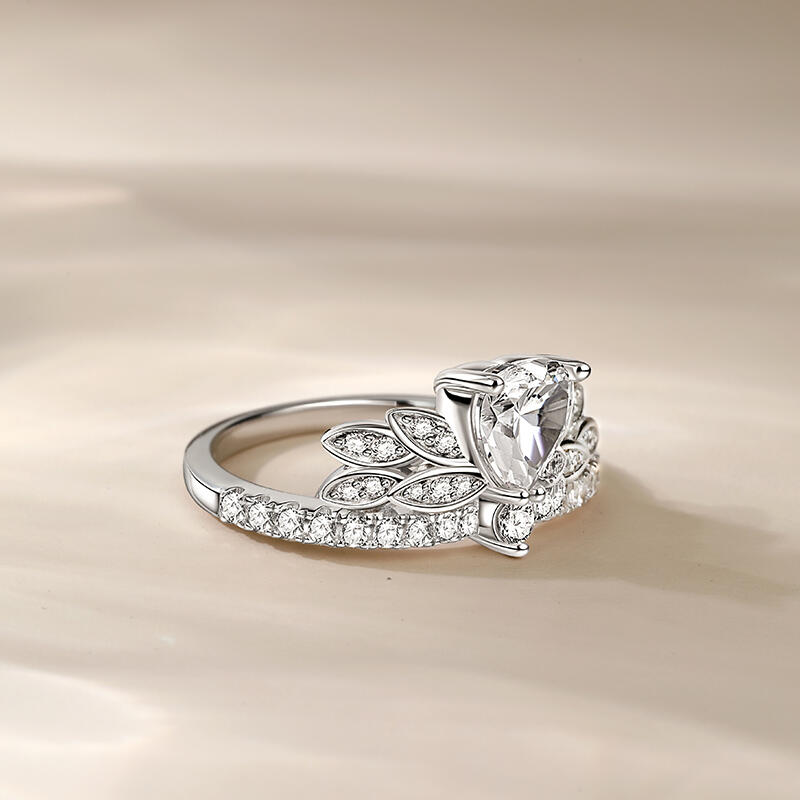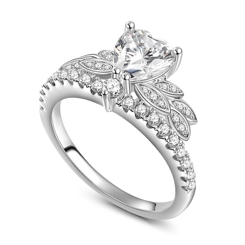Jeulia Leaf Shape Heart Cut Sterling Silver Ring