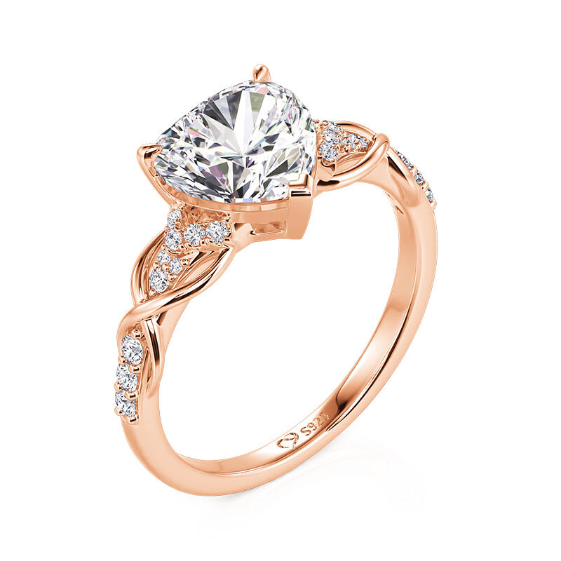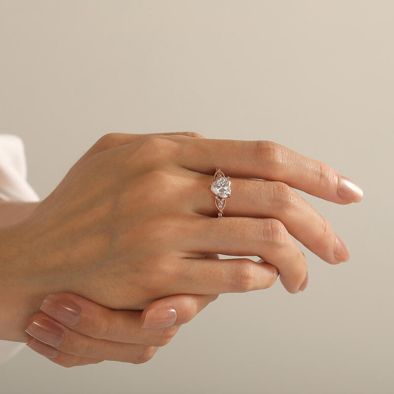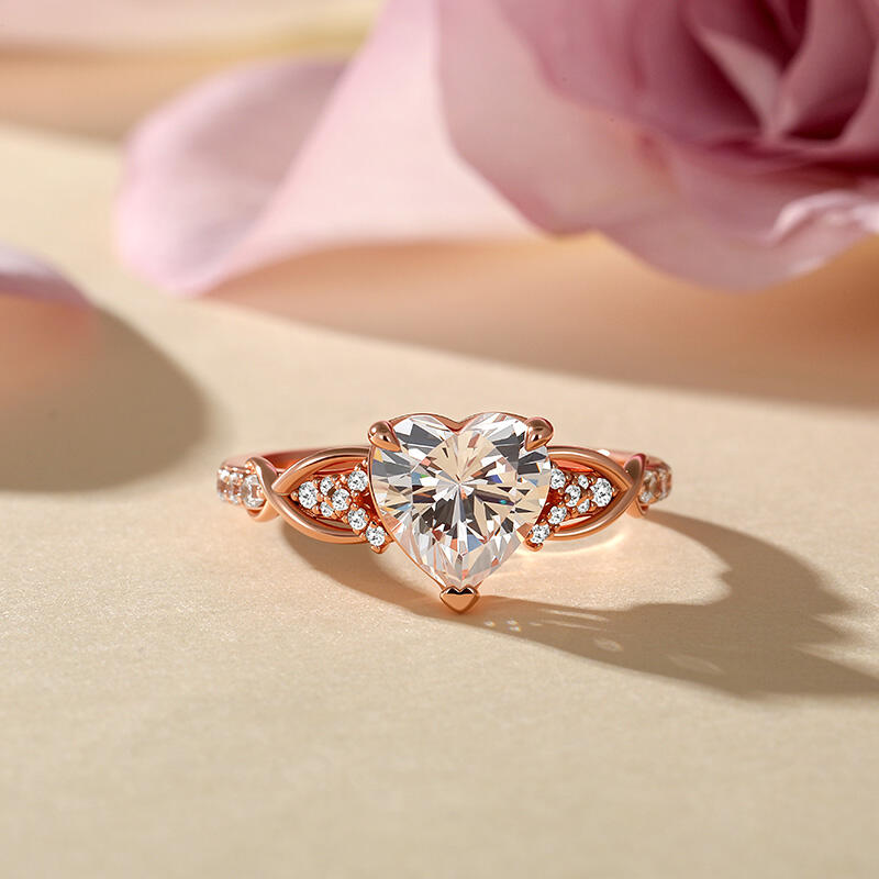 Jeulia infinity engagement ring with a heart-cut gem anchors the band where rose gold spirals into eternity, its curves studded with side stones that shift from dawn’s gold to dusk’s rose. The gradient isn’t mere color—it’s a chronology of light, each stone a timestamp in your shared sky. The infinity loops tighten near the heart, then loosen toward the wrist, as if love itself breathes here. Wear this heart shaped engagement ring to map moments: how warmth deepens, how vows ripple, how a single heartbeat can bend time.