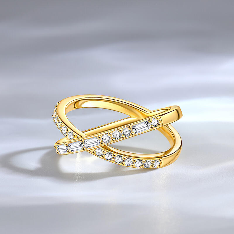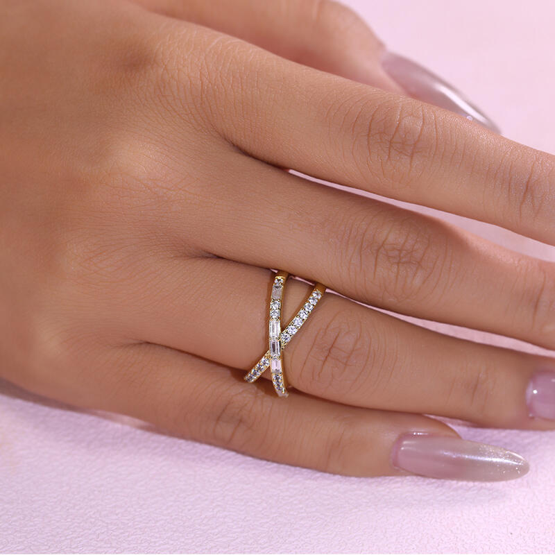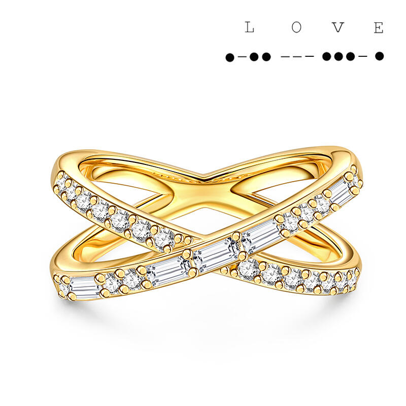 Jeulia Love Morse Code Crossover Sterling Silver Ring