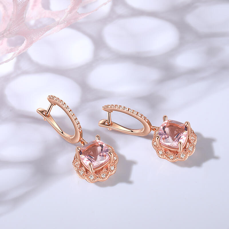 Jeulia Milgrain Halo Cushion Cut Synthetic Morganite Sterling Silver Drop Earrings