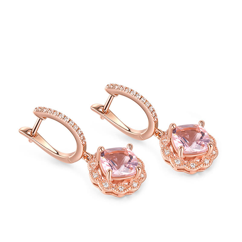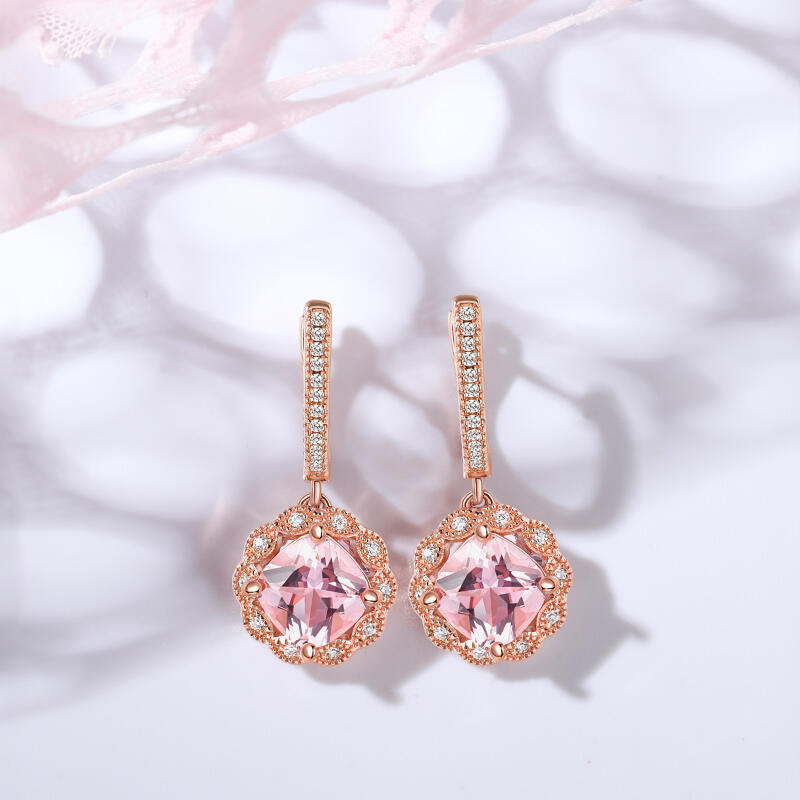 Immerse yourself in the allure of vintage-inspired elegance with these exquisite earrings. The intricate milgrain detailing along the halo adds a touch of old-world charm, beautifully complementing the timeless beauty of the cushion-cut morganite. Its gentle blush hue captivates the eye and radiates a sense of warmth and femininity. The cushion-cut morganite, with its unique combination of softness and brilliance, captures the essence of romance and elegance. Its gentle curves and facets reflect light with a mesmerizing sparkle, captivating all who behold it. These earrings are a symbol of refined taste and individuality, a celebration of the extraordinary beauty found in every woman. Indulge in the timeless beauty of our milgrain halo earrings and let the cushion-cut morganite transport you to a world of enchantment and sophistication.