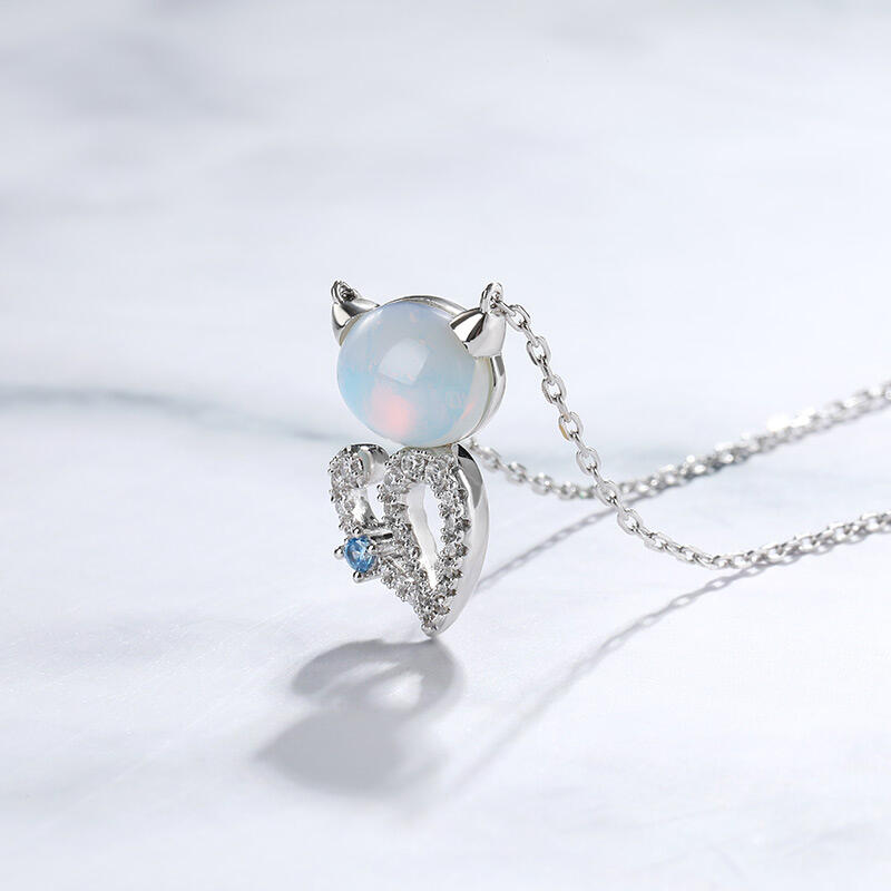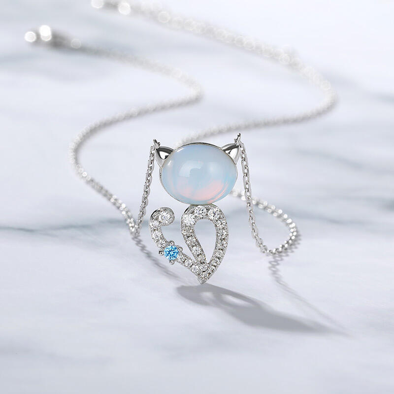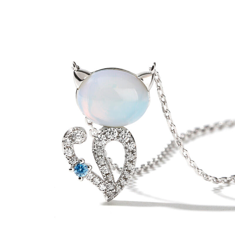 Jeulia "Moonlight Magic" Cat Sterling Silver Moonstone Necklace