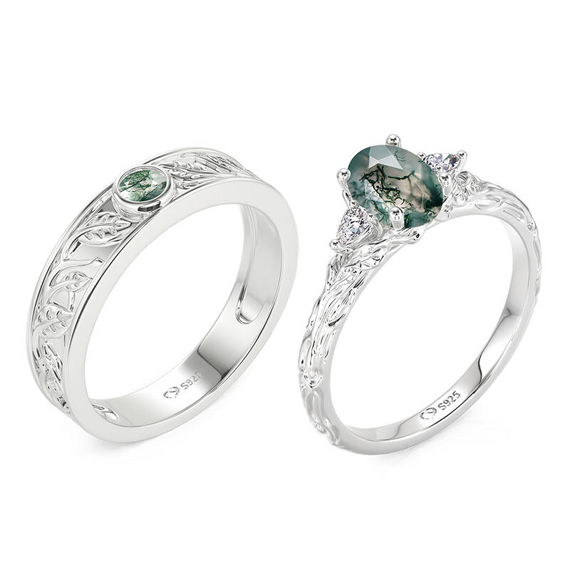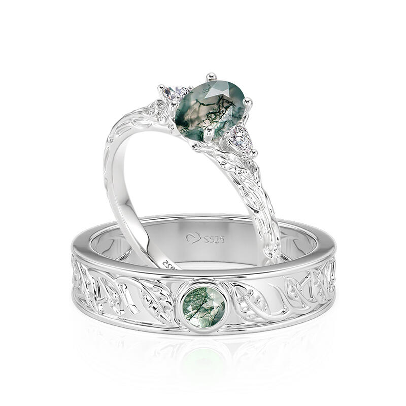 Jeulia Nature Inspired Moss Agate Couple Rings Set