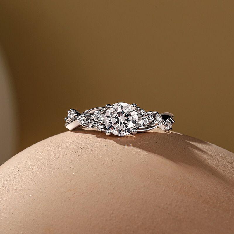 Crafted with meticulous artistry in sterling silver, the Jeulia Olivetta Twist Round Cut Engagement Ring seamlessly blends the timeless brilliance of its round center stone with the fluid rhythm of its clustered twisted band. The dazzling central round stone is tenderly embraced by the dynamic cluster-twist band, each twist intricately set with delicate stones. Like stars converging into a swirling galaxy, they trace vibrant paths of light and shadow upon the finger. The design captures the timeless focus of a classic solitaire while adding depth through layered clusters of twisted bands. This cluster ring creates a rich, dimensional visual effect where love shines eternally, as if amidst flowing starlight—a unique testament to cherished moments.