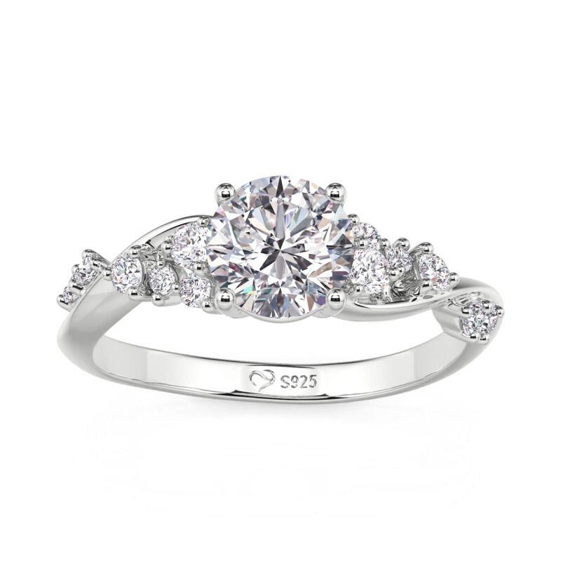 Jeulia Olivetta Twist Round Cut Engagement Ring Sterling Silver