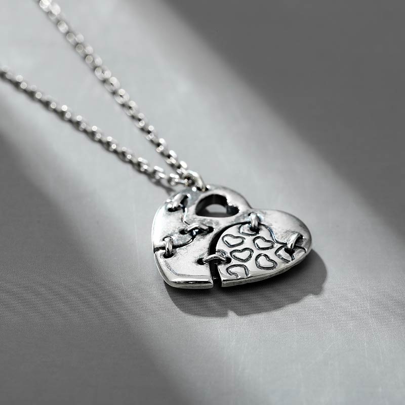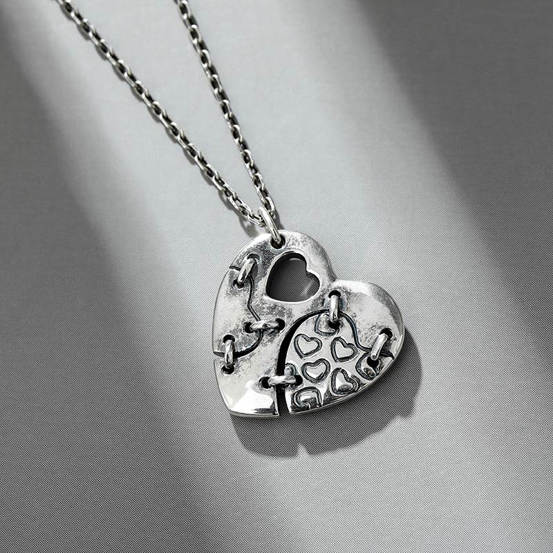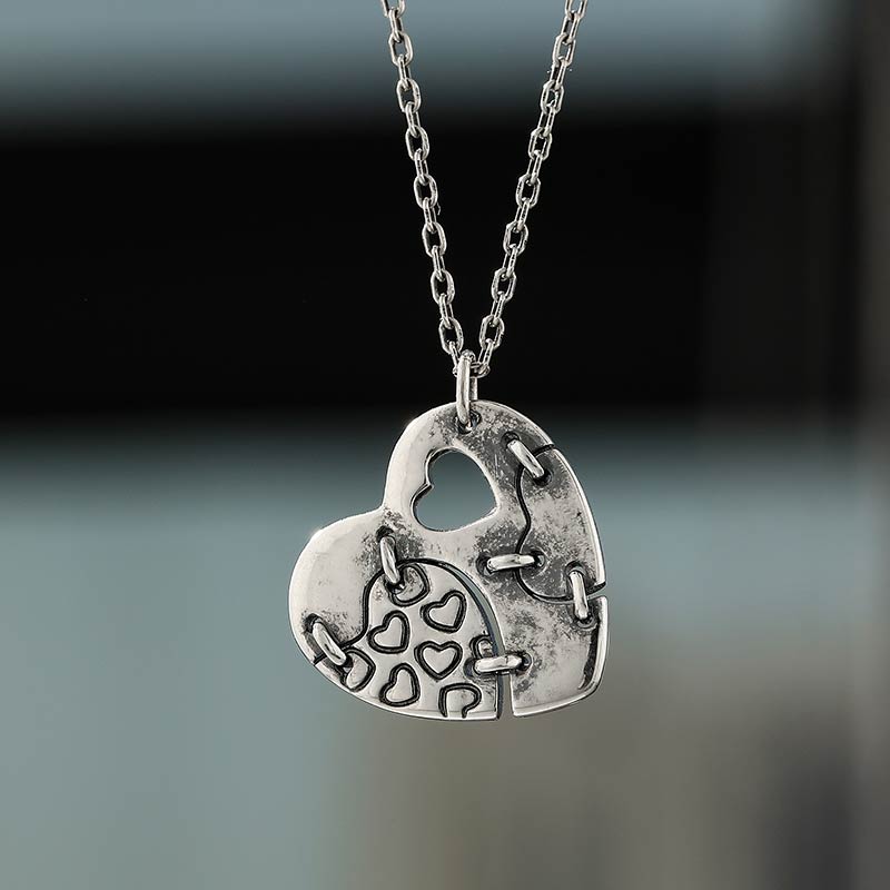 Jeulia "Patched Heart" Sterling Silver Necklace