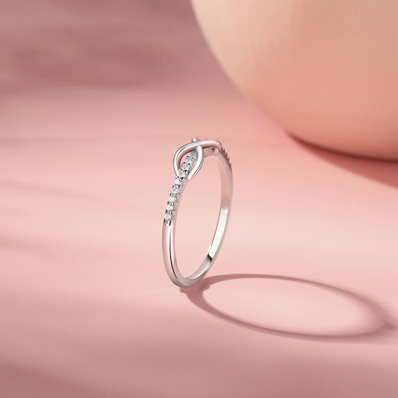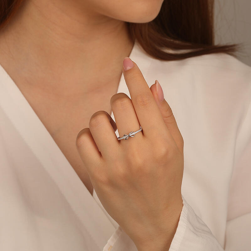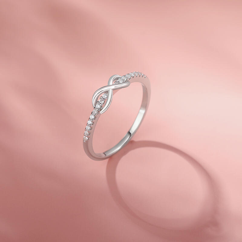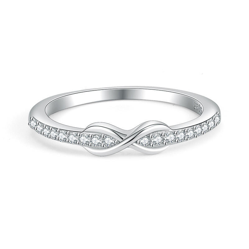 This silver infinity ring symbolizes never-ending love and endless hope with its simple yet delicate design. The pure silver light reflects an endless future, as does the endless emotional bond between you. Whether commemorating a special moment or everyday companionship, this promise ring with pave setting arm will be an everlasting symbol of your relationship. Wear it and let the infinite vows and beauty be with you anytime, anywhere.