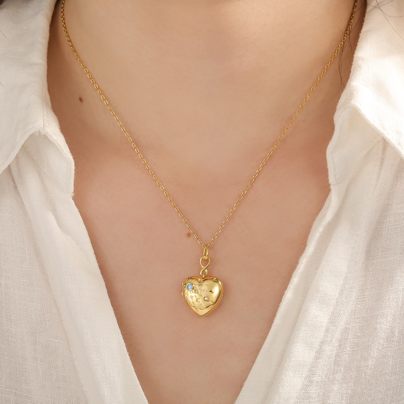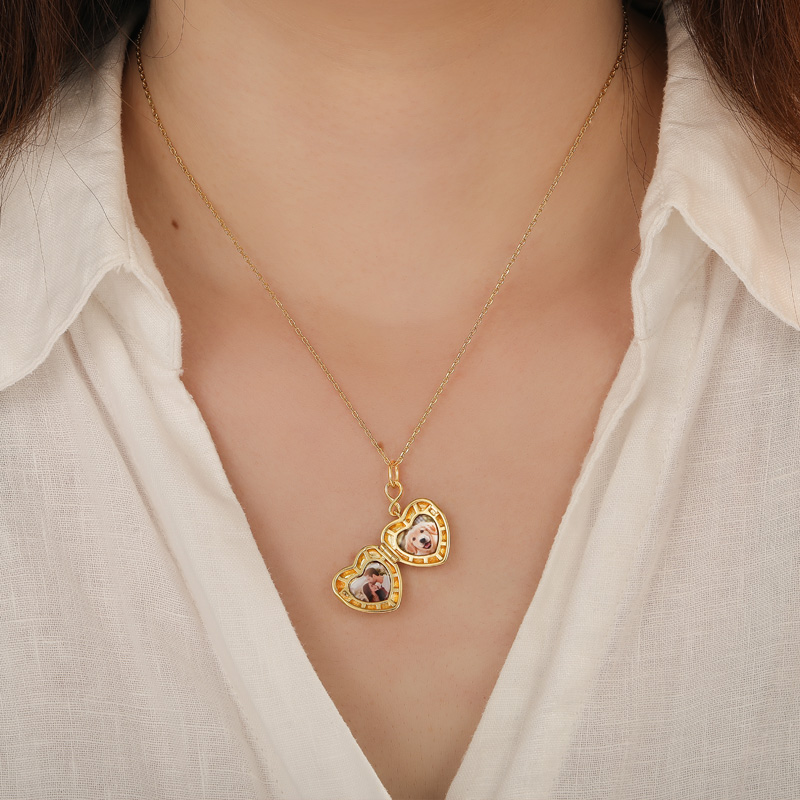 Jeulia Personalized Heart Photo Locket Necklace with Birthstone