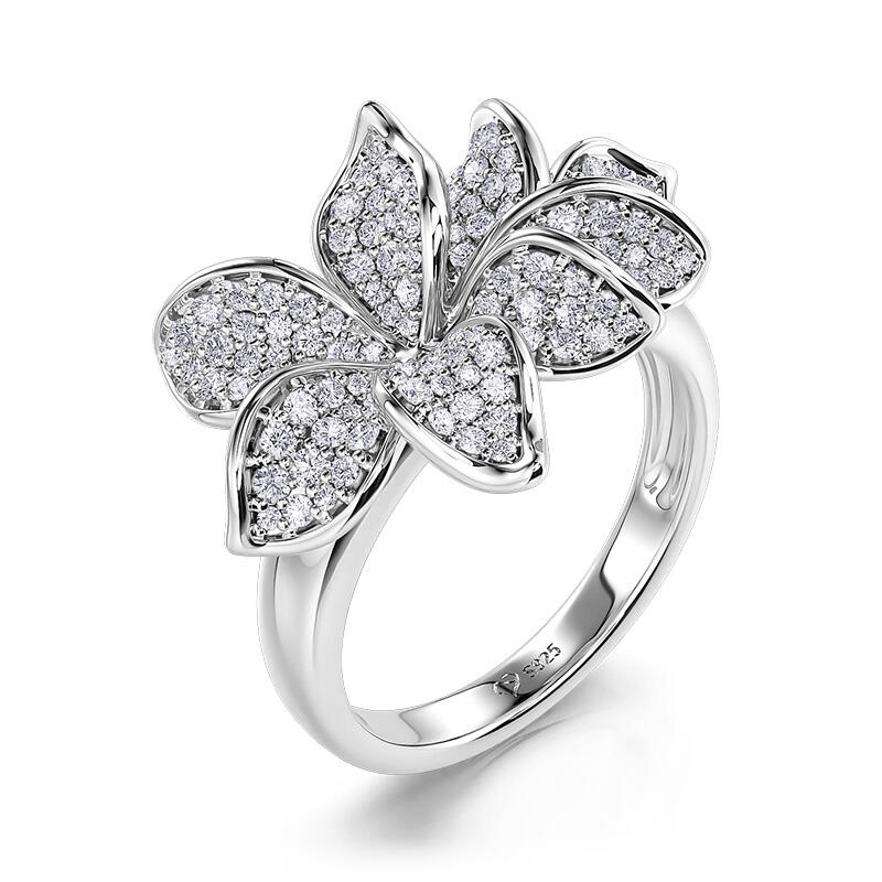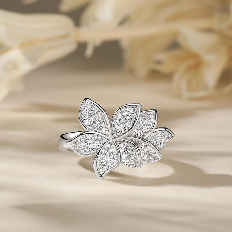 Jeulia Petal Bloom Design Sterling Silver Ring