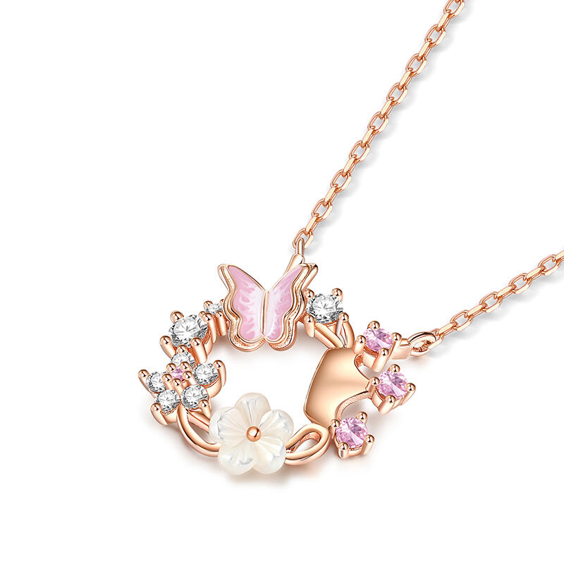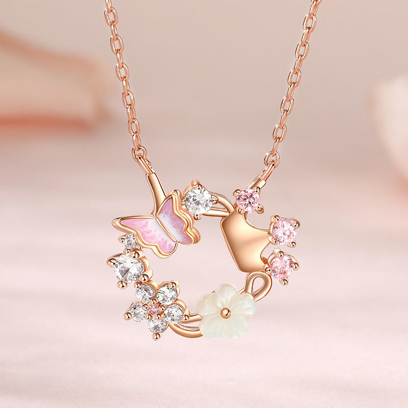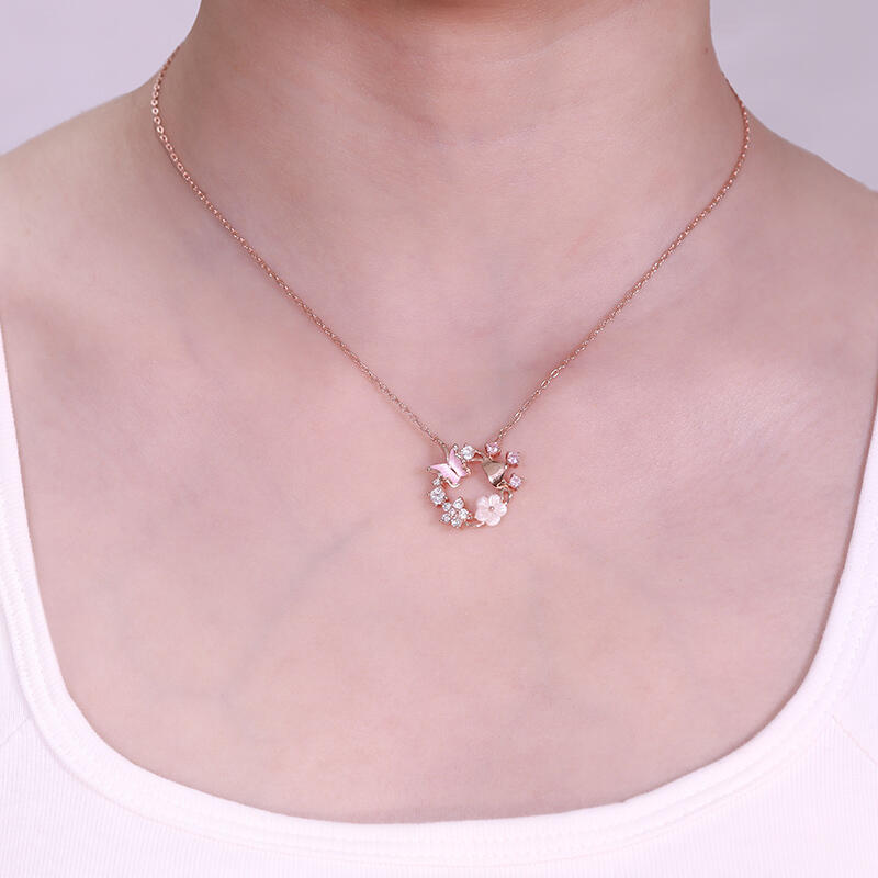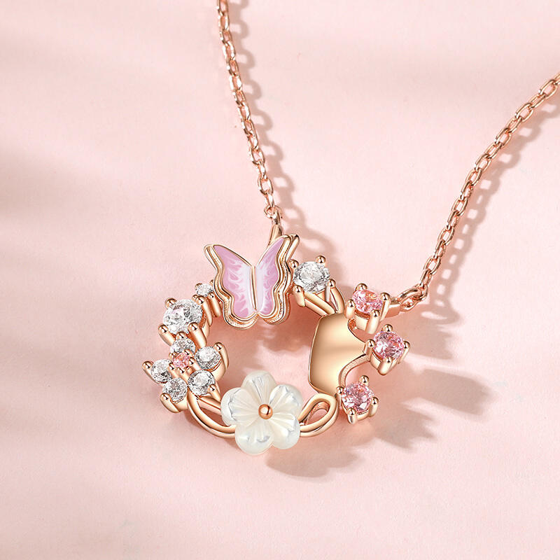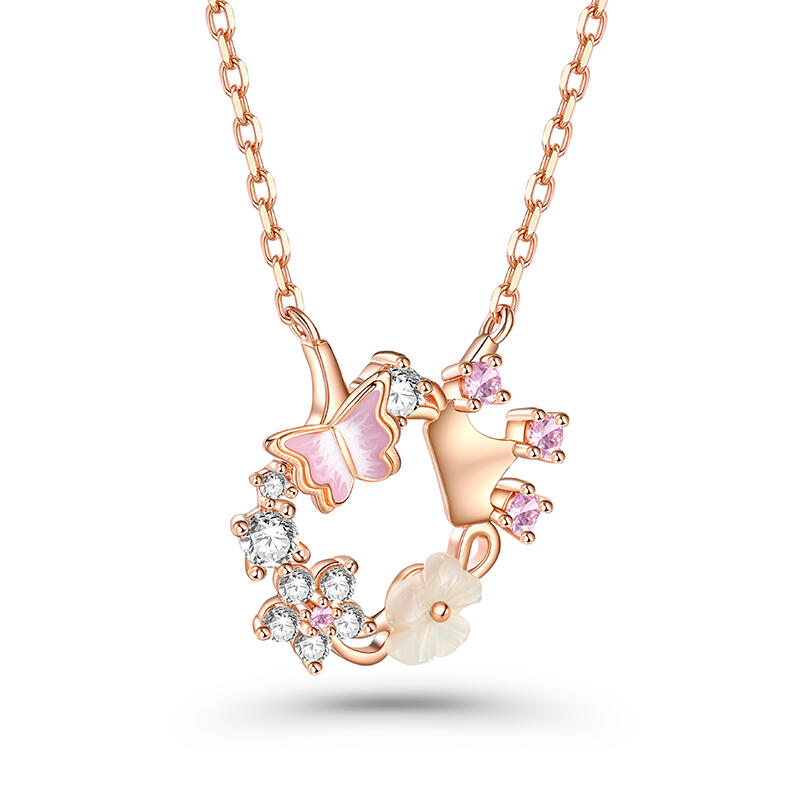 The delicate butterfly design, adorned with intricate shell flower details, dances gracefully along the circle pendants, this princess crown shell butterfly flower necklace capturing the essence of femininity and elegance. The shimmering rose gold tone reflects the light beautifully, adding a touch of sparkle to any outfit. The shell flower accents add a touch of natural beauty to the necklace. With its unique design and exceptional quality, this butterfly flower necklace is the perfect addition to any jewelry collection.